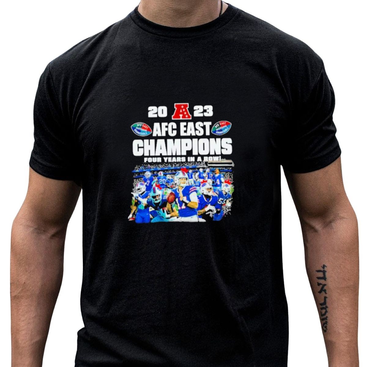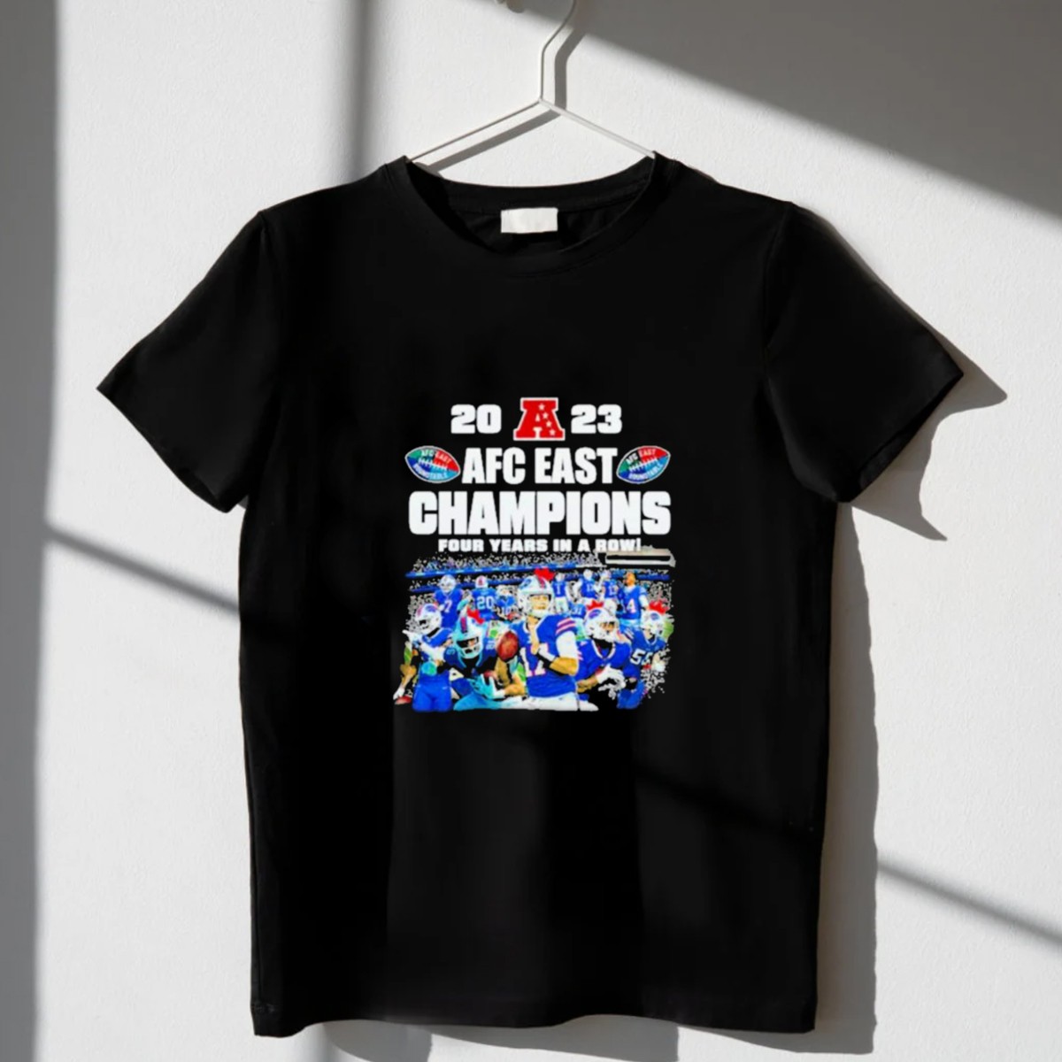 Celebrate the Buffalo Bills’ incredible achievement with our exclusive “2023 AFC East Champions Four Years In A Row” T-shirt! This fan-made design is perfect for die-hard Bills supporters who want to showcase their team pride during casual outings, themed events, or just running daily errands. Crafted for comfort and style, this shirt is a must-have for every Bills fan looking to stand out while cheering on their favorite team.