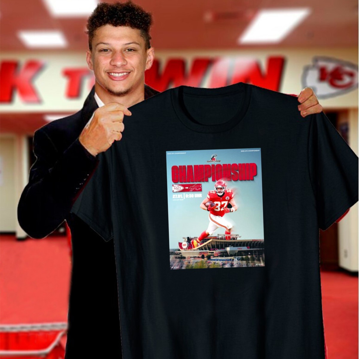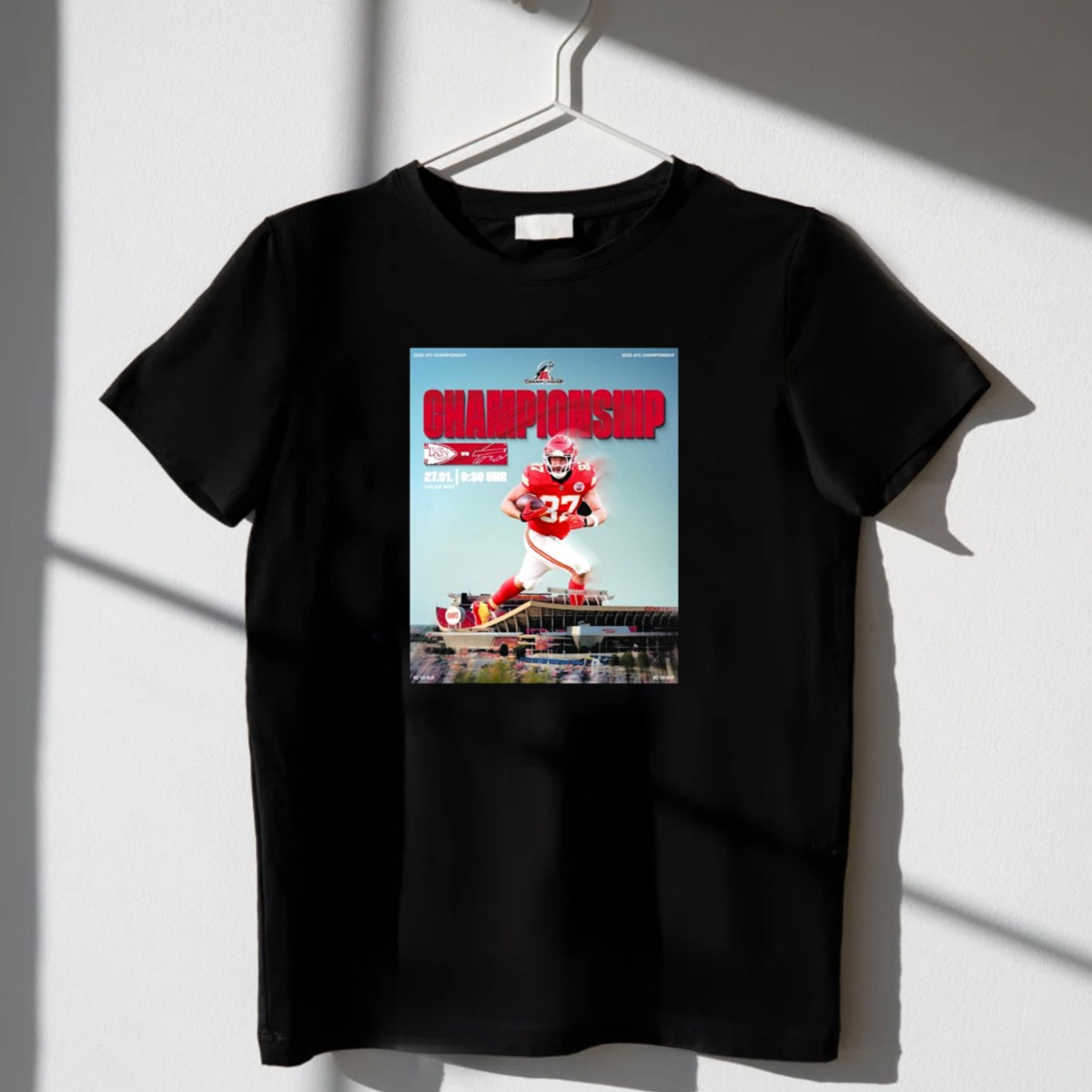 Show your team spirit with our exclusive 2025 AFC Championship Kansas City Chiefs vs Buffalo Bills T-Shirt! Designed for die-hard fans, this shirt is perfect for game day, themed events, or just casual outings with friends. The unique fan-made graphic showcases your allegiance to the Kansas City Chiefs while adding a stylish touch to your wardrobe. Made in the USA, this shirt is not just a piece of clothing; it’s a statement of pride and passion for your favorite team!