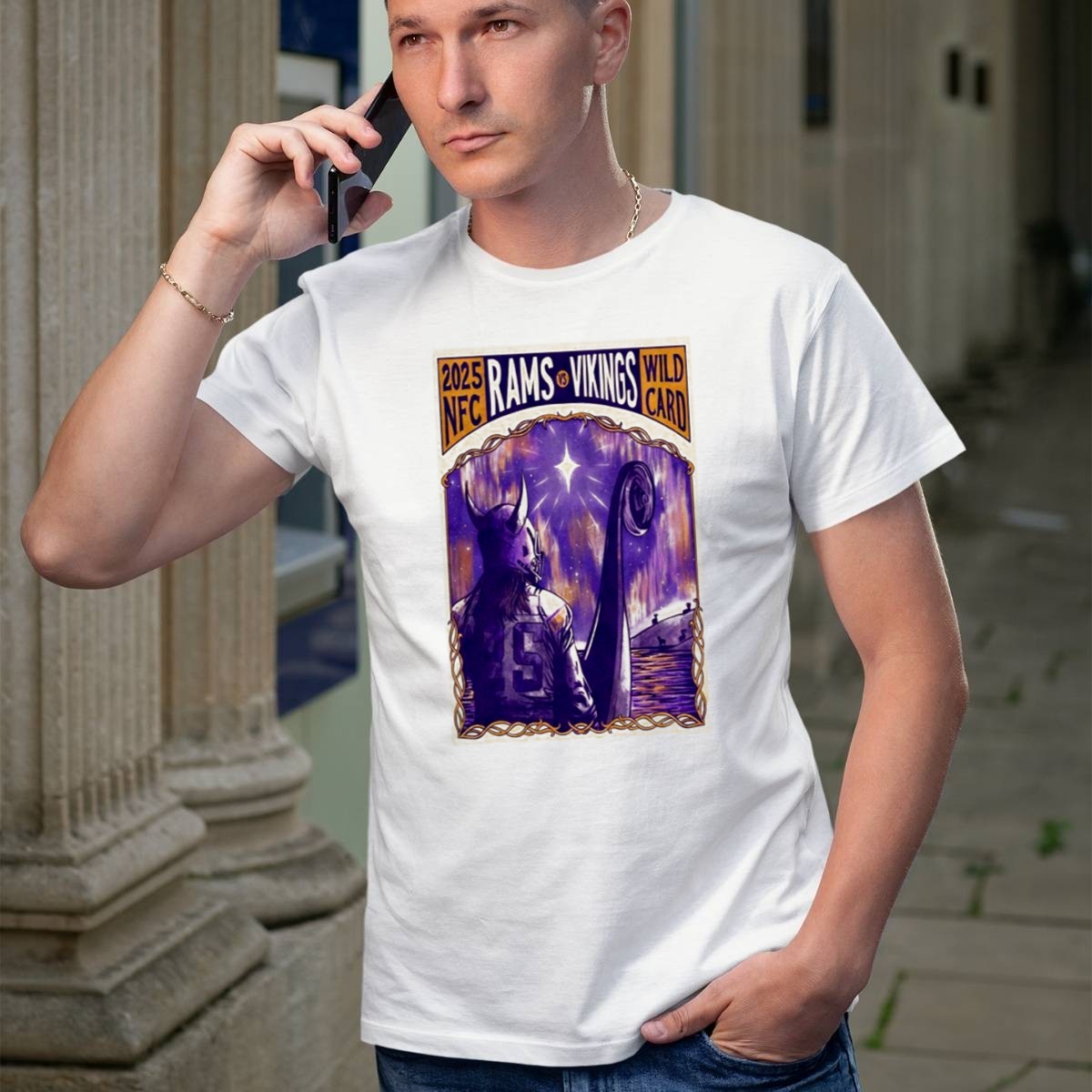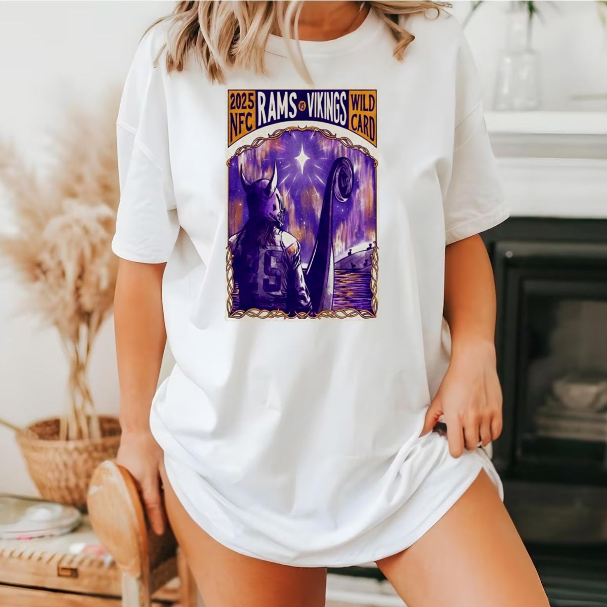 Show your team spirit with our 2025 NFC Rams vs Vikings Wild Card Viking Figure In Boat T-Shirt! This fan-made design captures the excitement of the game, making it the perfect choice for passionate supporters of both teams. Ideal for casual wear, themed events, or just lounging around on a game day, this shirt is both comfortable and stylish, ensuring you stand out in the crowd. Proudly printed in the USA, it’s a must-have for any true football fan.