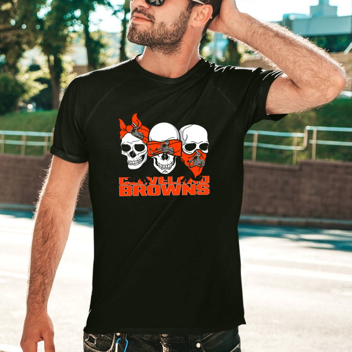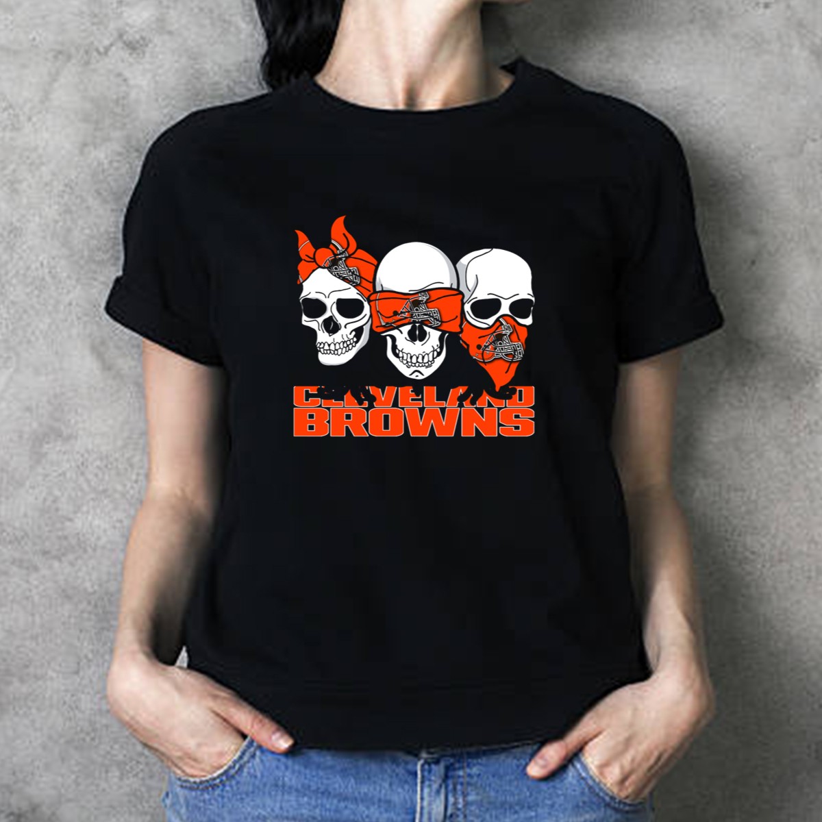 3 Skull CLEVELAND BROWNS Helmet Bandanas T-Shirt