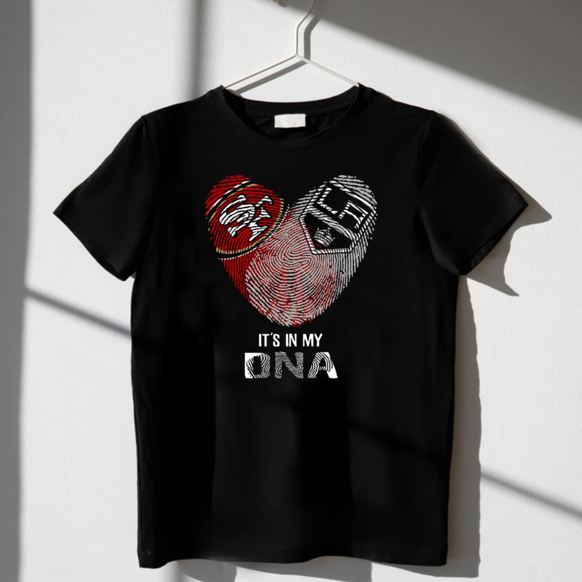 Show off your unwavering support for the Los Angeles Kings with our 49Ers Heart Fingerprint T-Shirt. Perfect for fans who wear their loyalty on their sleeves, this shirt is designed for casual outings, themed events, or just lounging at home. Made for comfort and style, it features a unique fan-made design printed right here in the USA, making it a must-have addition to any sports enthusiast’s wardrobe.