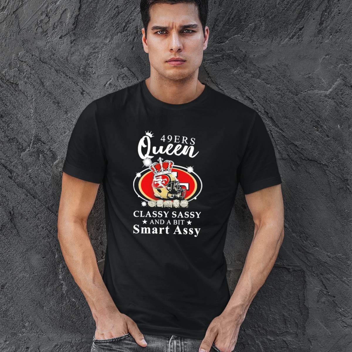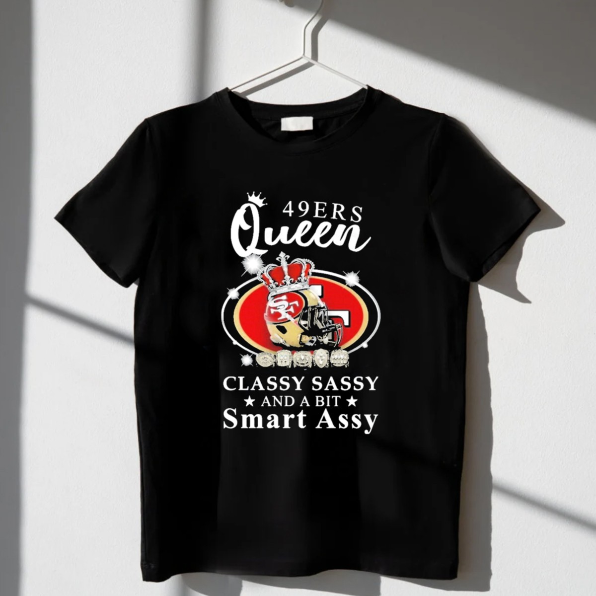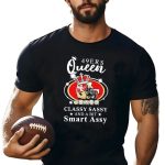 Show off your fierce team spirit with the 49Ers Queen Classy Sassy Smart Assy Helmet With Crown T-shirt! Perfect for die-hard fans and fashionistas alike, this tee combines a playful design with a classic fit, making it an ideal choice for casual outings, themed events, and daily wear. Crafted with care in the USA, this shirt celebrates individuality and team loyalty, allowing you to express your unique style while cheering for your favorite team.