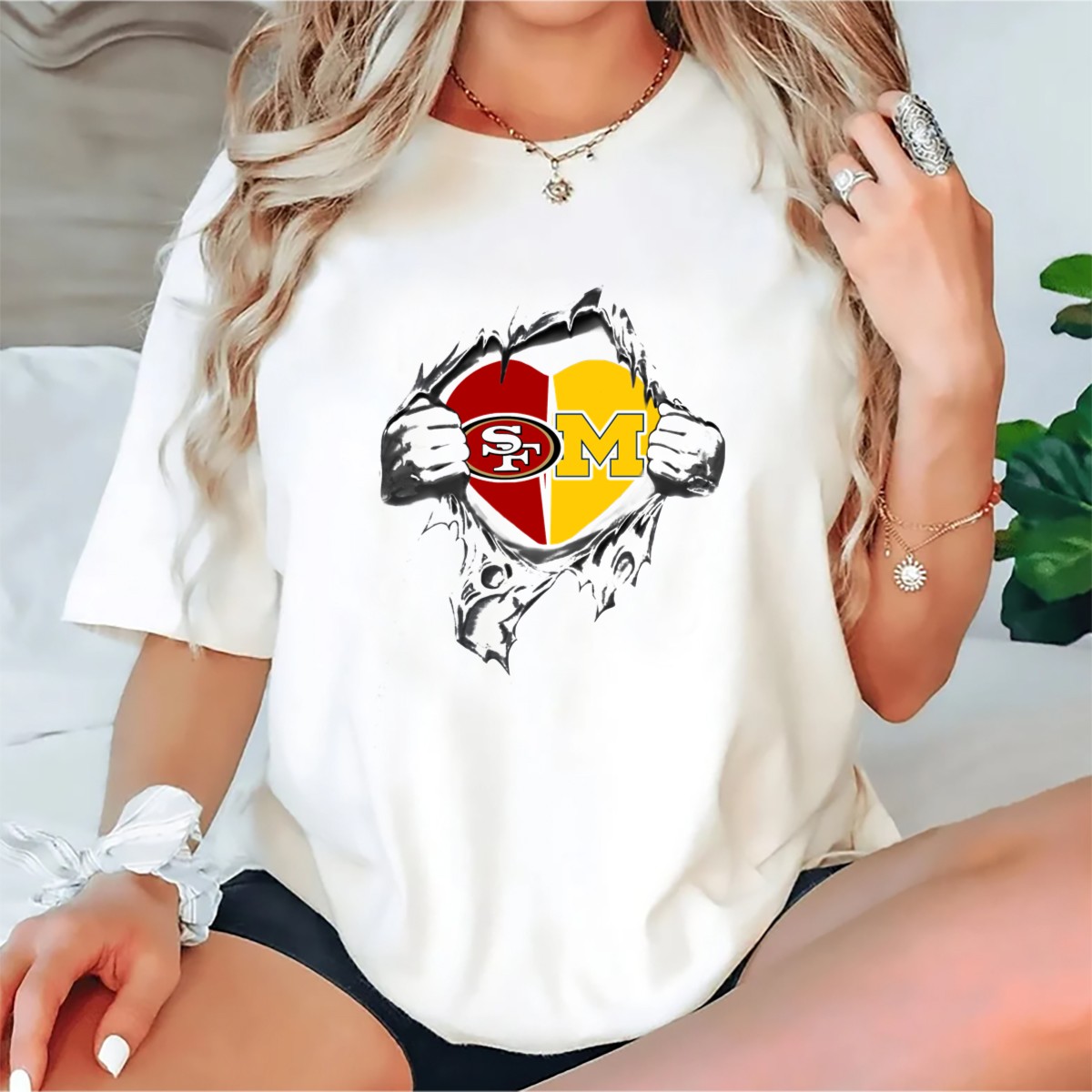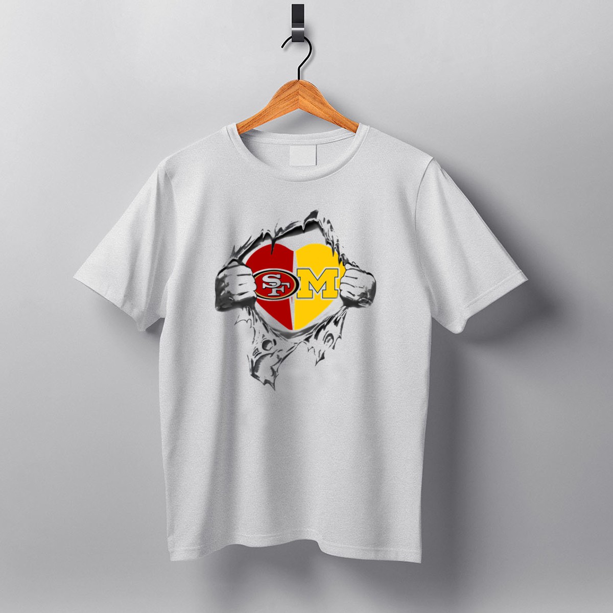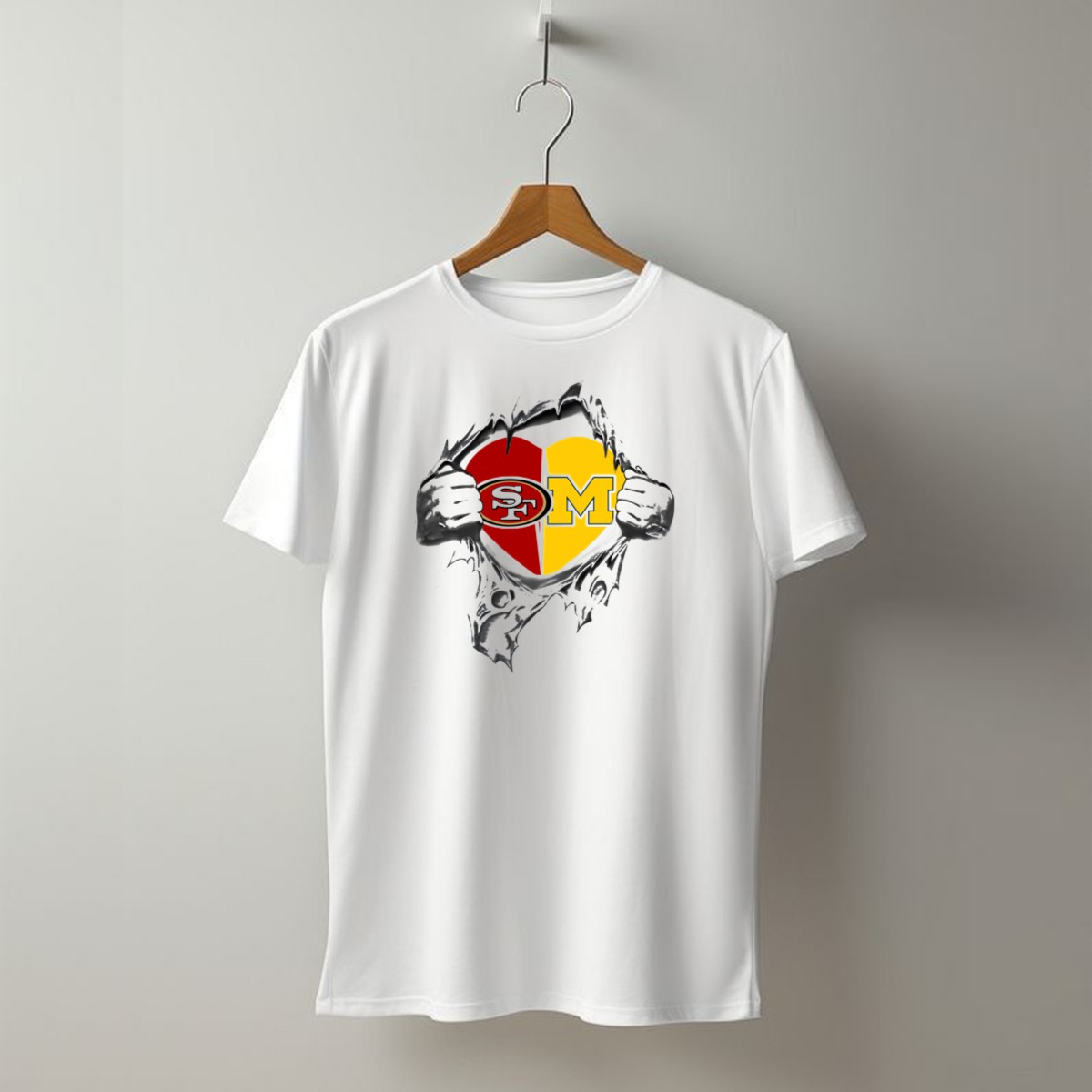 Show your love for both the 49ers and the Michigan Wolverines with this unique fan-made graphic T-shirt! Perfect for sports enthusiasts and college pride, this shirt is ideal for casual outings, themed events, or simply showcasing your team spirit every day. Made with care in the USA, this T-shirt blends comfort and style, making it a must-have addition to your wardrobe.