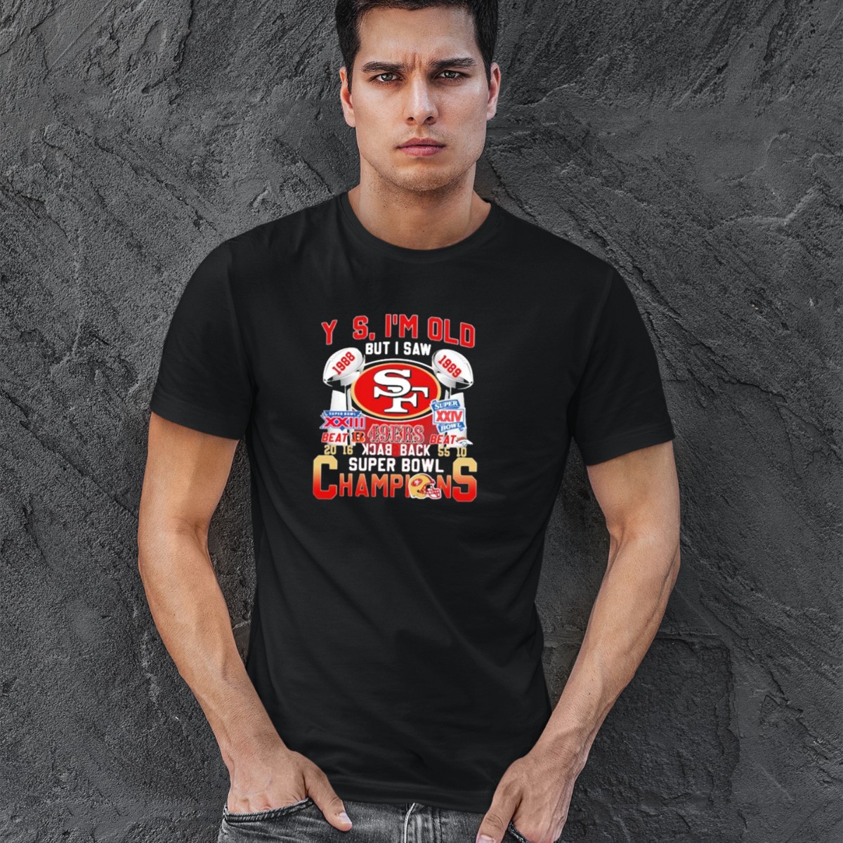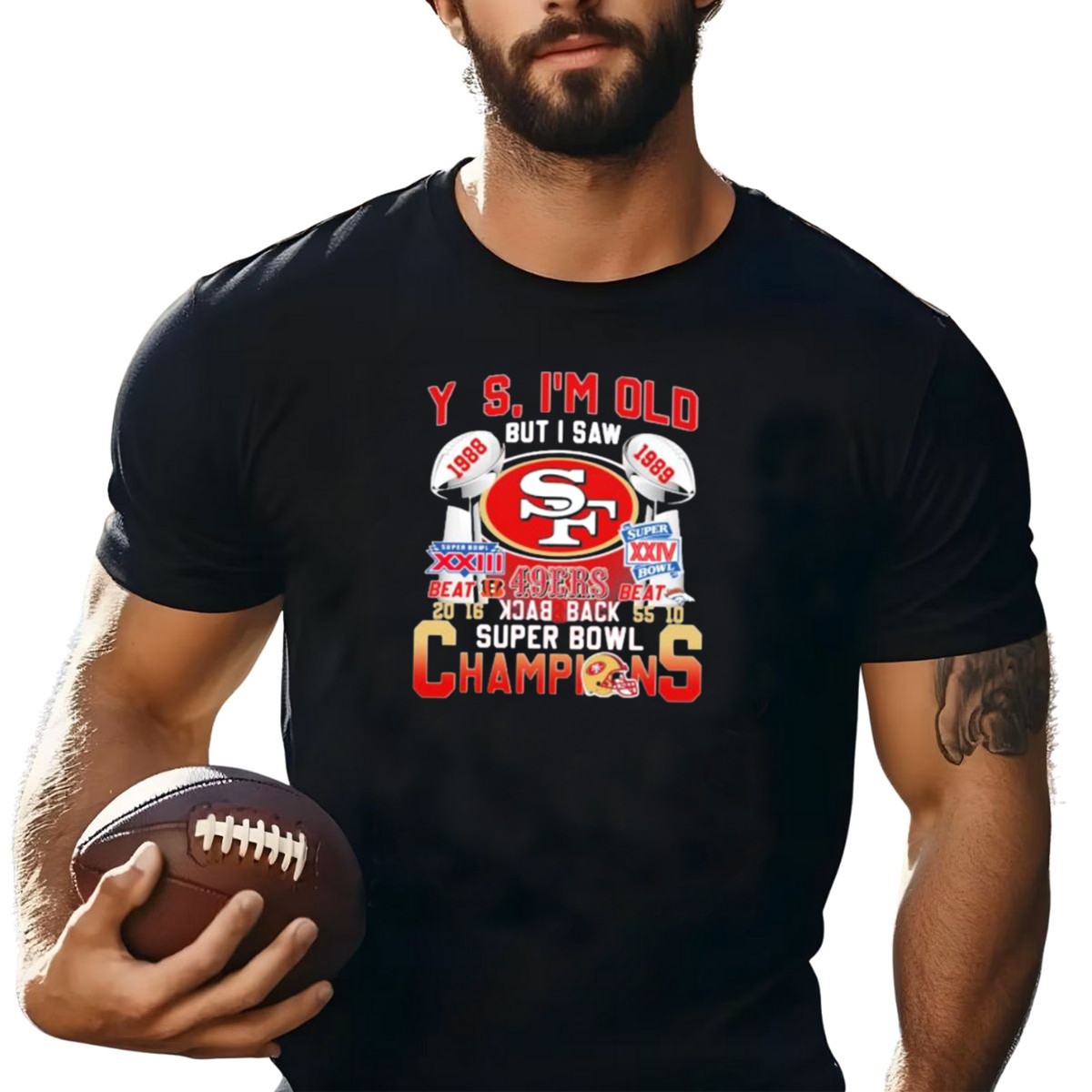 49Ers Yes I’M Old But I Saw 1988 1989 Super Bowl Xxiii Xxiv Back To Back Champions T-Shirt