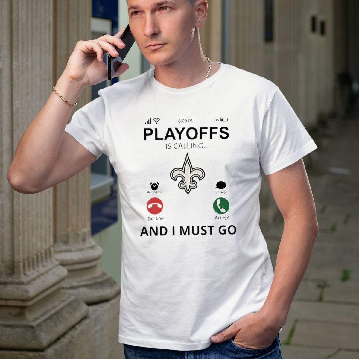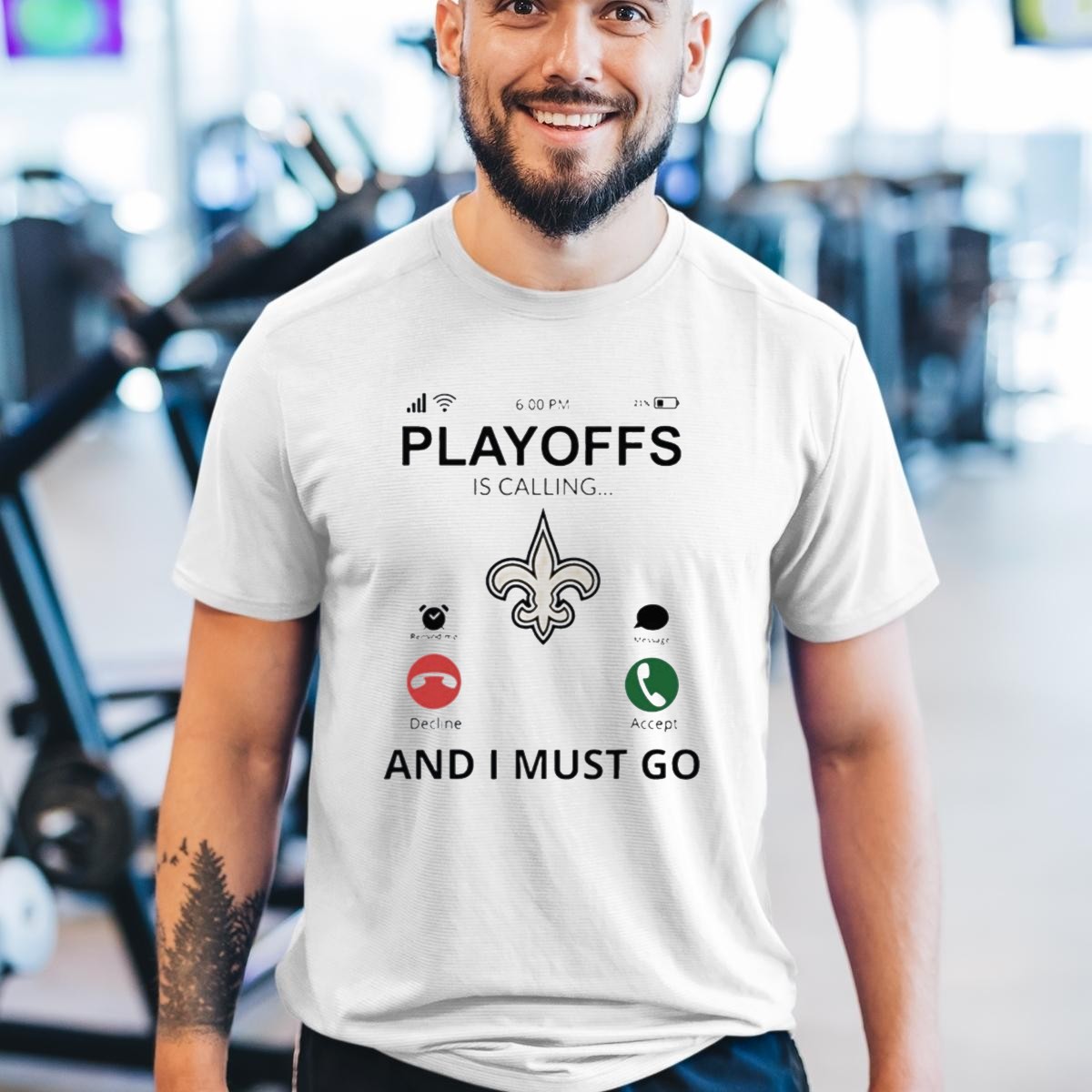 Get ready to show off your team spirit with our “6:00 PM Playoffs Is Calling, Decline or Accept, and I Must Go” T-shirt! Perfect for passionate fans who live for the thrill of game day, this shirt is ideal for casual outings, themed events, or simply lounging around. Made with a fan-made design printed in the USA, it’s not just a piece of clothing; it’s a statement that declares your unwavering support for the Saints while keeping you comfortable and stylish.