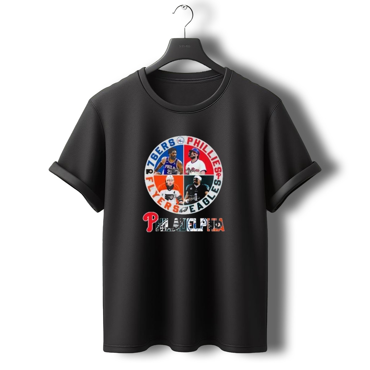 Show your unwavering support for Philadelphia’s iconic teams with our 76ers Phillies Flyers Eagles Team Signatures T-Shirt. This fan-made design captures the spirit of the City of Brotherly Love, making it perfect for die-hard sports enthusiasts and casual wearers alike. Whether you’re at a game, hosting a themed event, or just enjoying a day out, this shirt is a stylish way to represent your favorite teams in one comfortable, classic fit. Proudly printed in the USA, it’s a must-have for any Philadelphia sports fan!