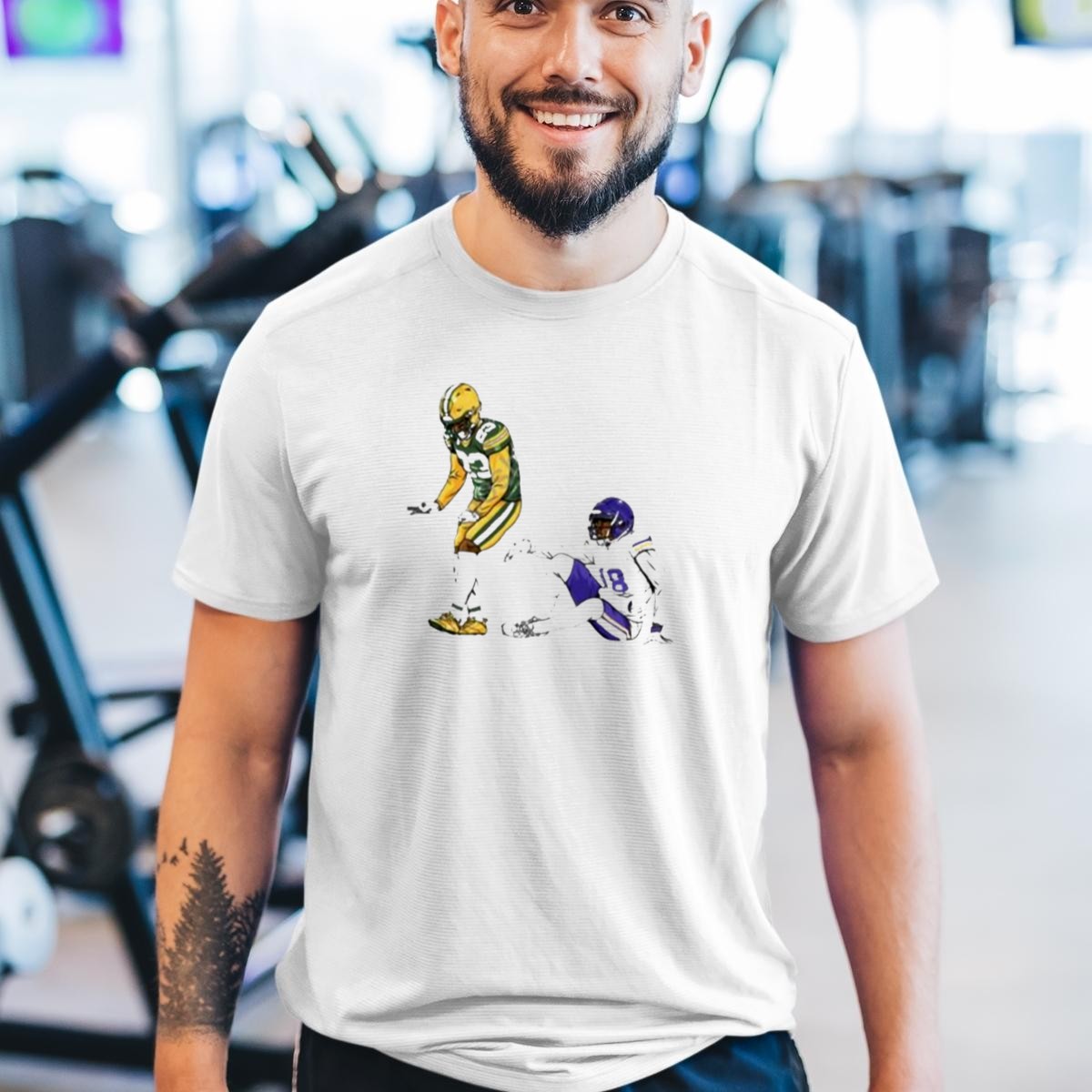 Show off your love for the game with our Aaron Nagler Ja Gritty Packers Vikings Dance T-Shirt! Perfect for die-hard football fans, this shirt is designed for those who want to make a statement during casual outings, themed events, or just while cheering from the comfort of their home. With a unique fan-made design printed in the USA, this T-shirt captures the spirit of rivalry and camaraderie in every thread.