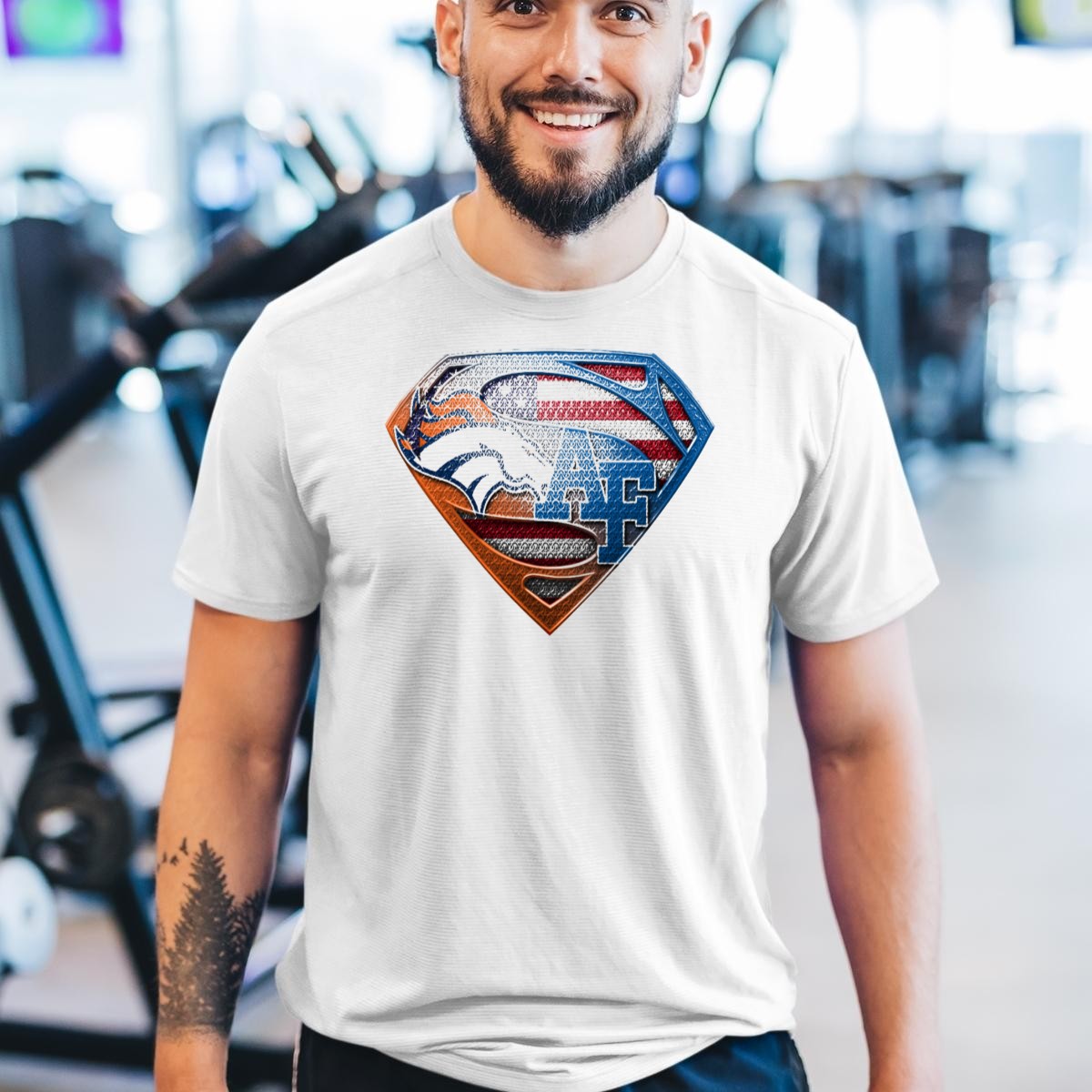 Show your pride for both the Air Force Falcons and the Denver Broncos with this unique American Flag Shield T-Shirt! Perfect for fans who want to celebrate their favorite teams while embracing the spirit of patriotism, this shirt is ideal for casual outings, themed events, or just lounging at home. Made with comfort and durability in mind, this fan-made design is printed right here in the USA, ensuring you stand out in style.