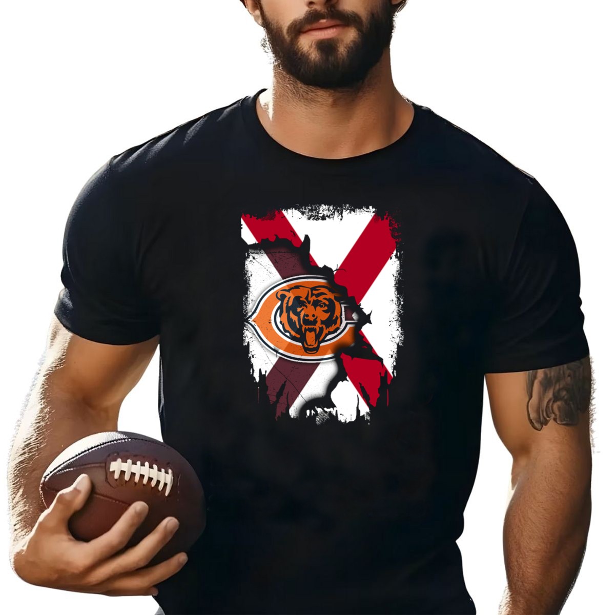 Show your team spirit with our Alabama State Flag with Chicago Bears T-Shirt! Perfect for die-hard fans, this shirt combines pride for the state of Alabama with the iconic Chicago Bears logo. Whether you’re at a game, gathering with friends, or just enjoying a casual day out, this shirt is a fantastic way to showcase your love for football and your roots. Made with a unique fan-made design printed in the USA, it’s a standout piece for any sports enthusiast.
