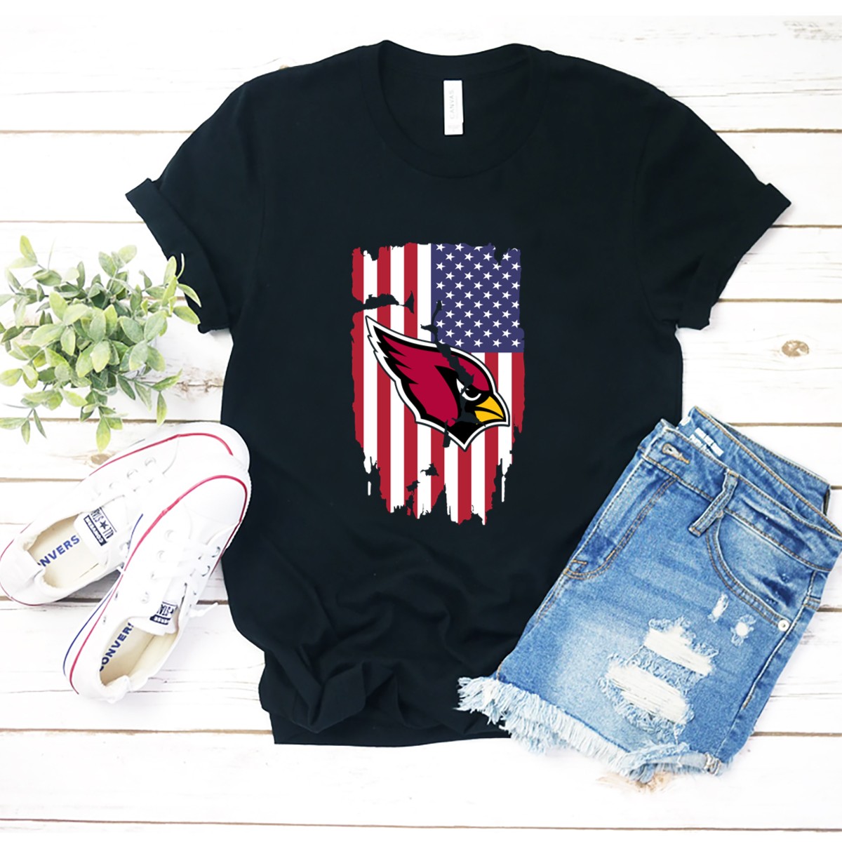 Show your pride for the Arizona Cardinals with our fan-made American Flag design T-shirt, perfect for celebrating the 4th of July or any casual outing. This classic fit shirt is not only stylish but also incredibly comfortable, making it an ideal choice for game days, themed events, or just lounging around. Printed in the USA, it’s a unique addition to any Cardinals fan’s wardrobe.