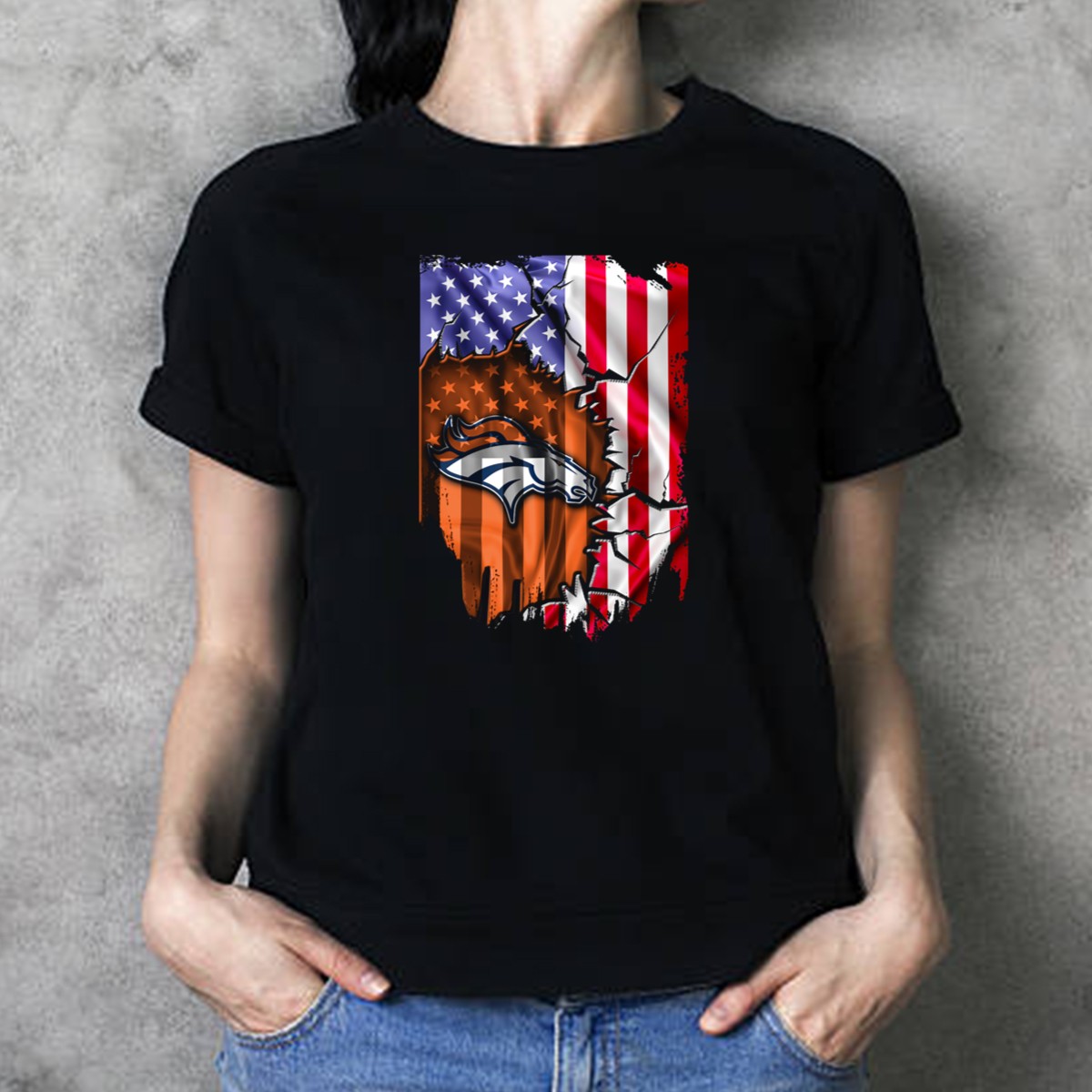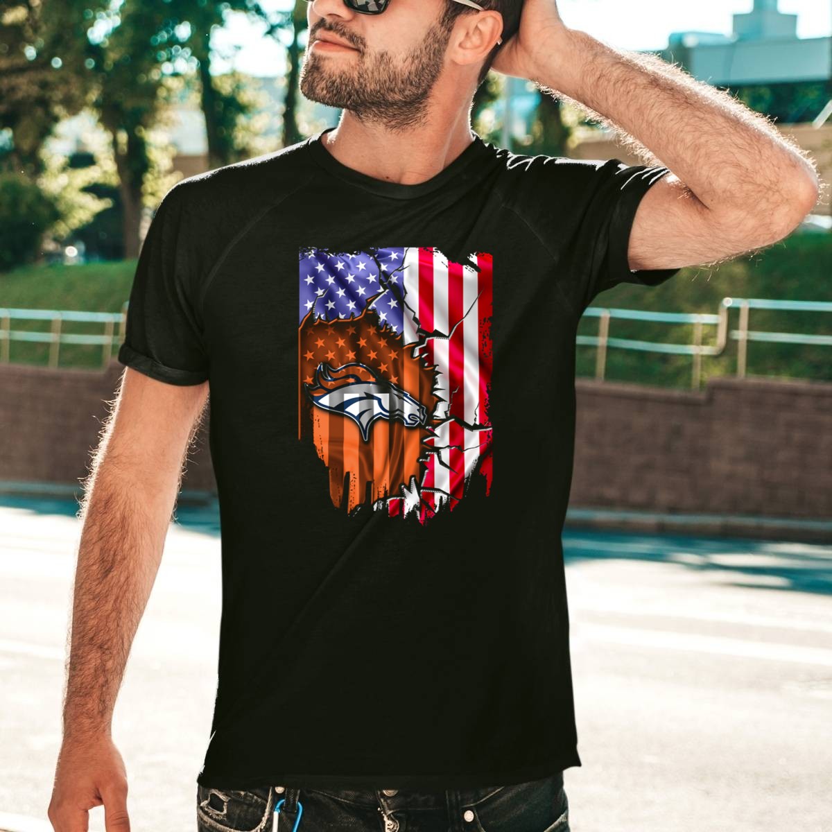 American Flag Denver Broncos Logo Explosion T-Shirt