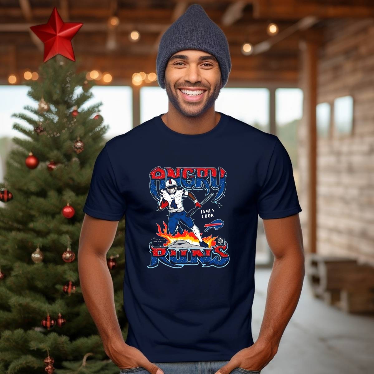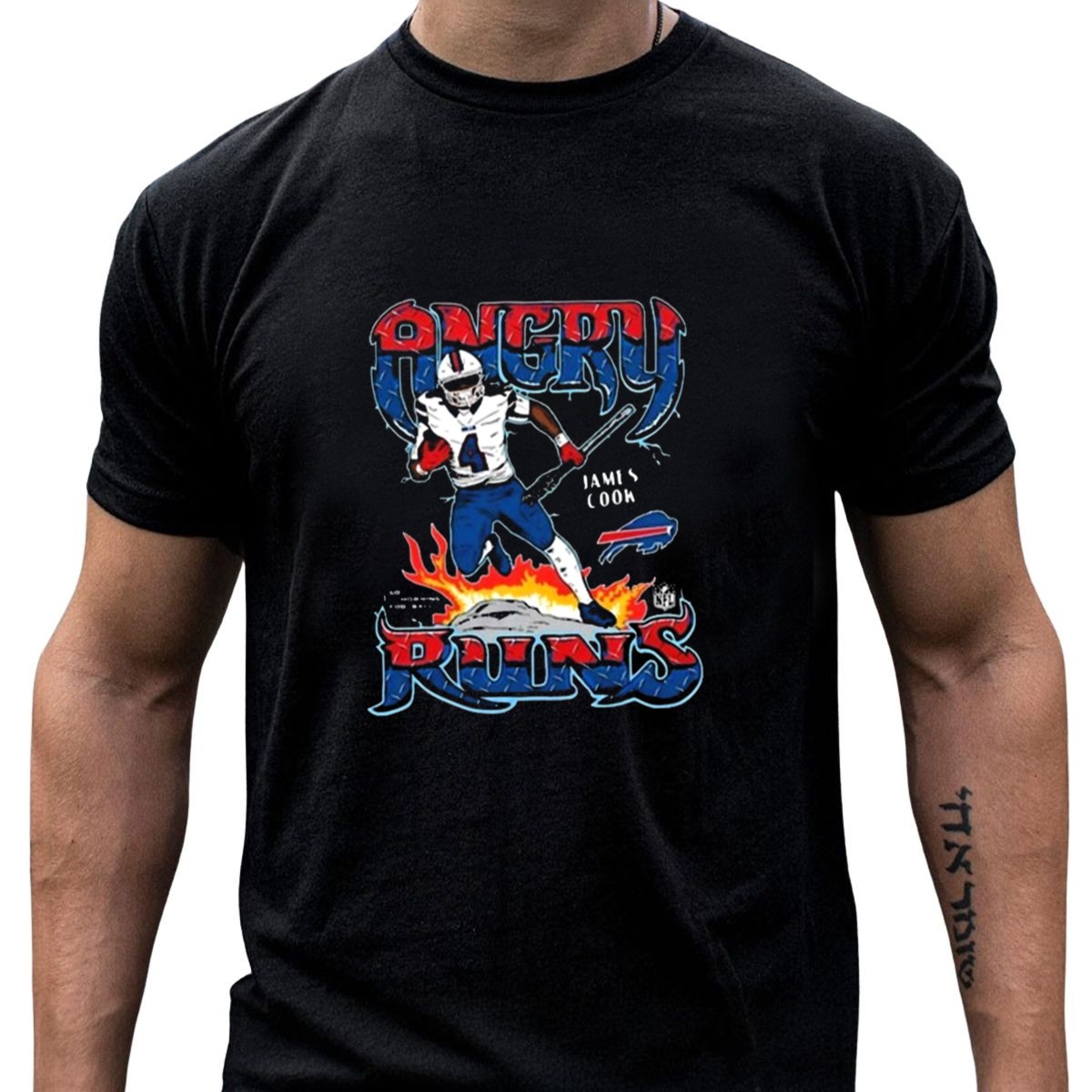 Show your passion for the game with the Angry Runs James Cook Buffalo Bills NFL Football T-Shirt! This fan-made design is perfect for die-hard Bills supporters and captures the spirit of football season. Whether you’re cheering from the stands, hosting a game day party, or just enjoying a casual day out, this shirt is designed for comfort and style. Made in the USA, it combines a classic fit with a unique graphic that showcases your love for James Cook and the Buffalo Bills.