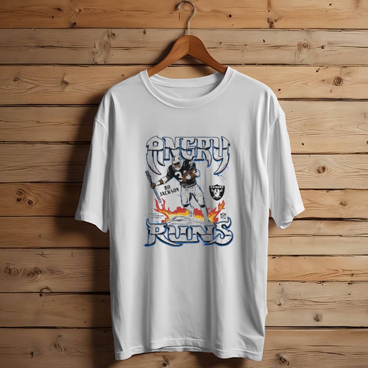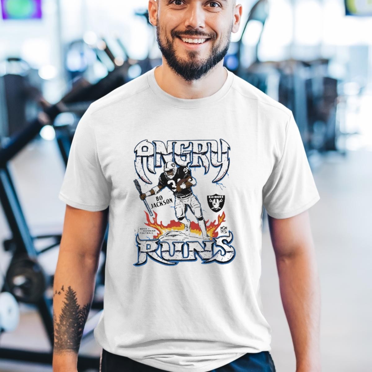 Celebrate the legacy of Bo Jackson with our Angry Runs Raiders Fire and Shield T-Shirt! This fan-made design is perfect for die-hard Raiders supporters and sports enthusiasts alike. Whether you’re at a game, a themed event, or just enjoying your everyday casual wear, this shirt showcases your passion with a striking graphic that stands out. Crafted from soft, durable cotton, it not only looks great but feels comfortable for all-day wear.