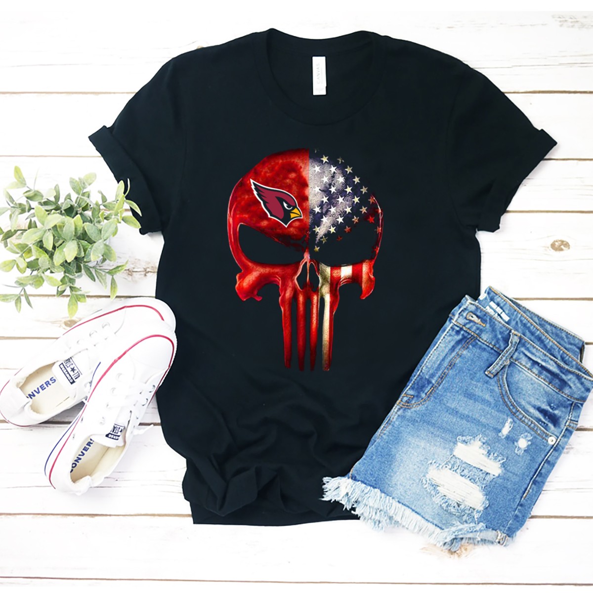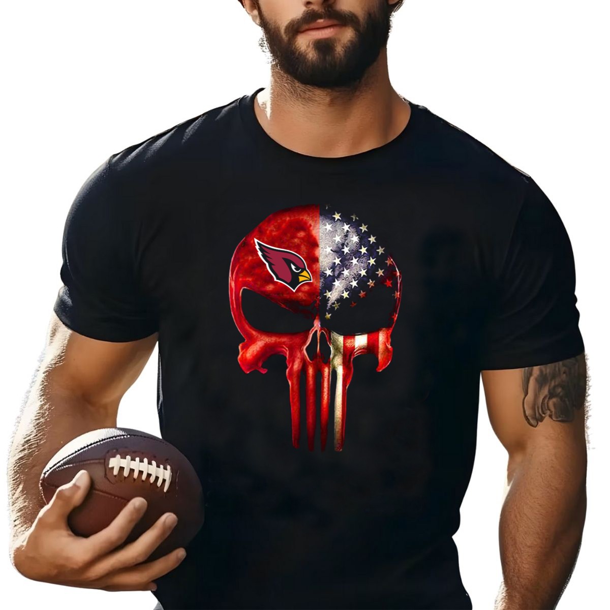 Show off your team spirit with our Arizona Cardinals American Flag Skull T-Shirt, a must-have for die-hard fans and casual wear enthusiasts alike. This unique fan-made design combines the iconic Arizona Cardinals logo with a bold American flag skull, making it perfect for game days, themed events, or just hanging out with friends. Crafted for comfort and style, you’ll love the way you look and feel while cheering on your favorite team.