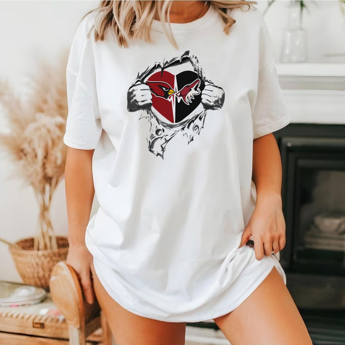 Show your love for Arizona sports with our Arizona Cardinals and Coyotes Heart T-Shirt! Perfect for fans who want to showcase their team spirit in a stylish and comfortable way, this graphic tee is ideal for casual outings, themed events, or everyday wear. Made with a fan-made design printed right here in the USA, it’s a unique addition to any sports enthusiast’s wardrobe.