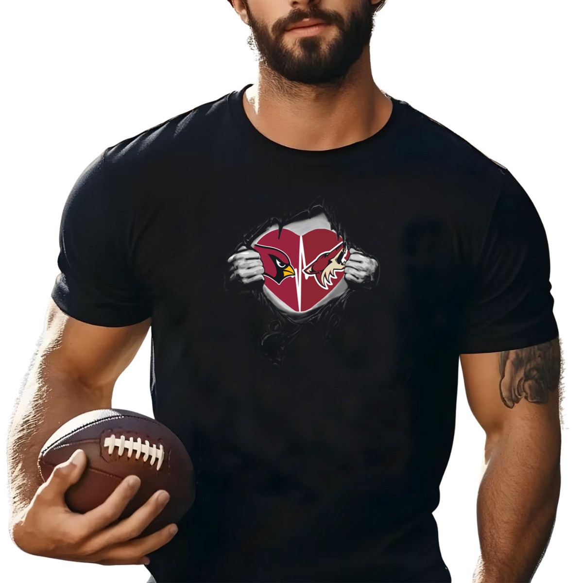 Show your love for Arizona’s sports teams with this stylish Arizona Cardinals Arizona Coyotes Heart T-Shirt! Perfect for passionate fans and casual wearers alike, this fan-made design celebrates the spirit of both teams while providing comfort and versatility. Whether you’re cheering from the stands, enjoying a themed event, or simply going about your daily activities, this shirt is your go-to choice for expressing team pride in any season.