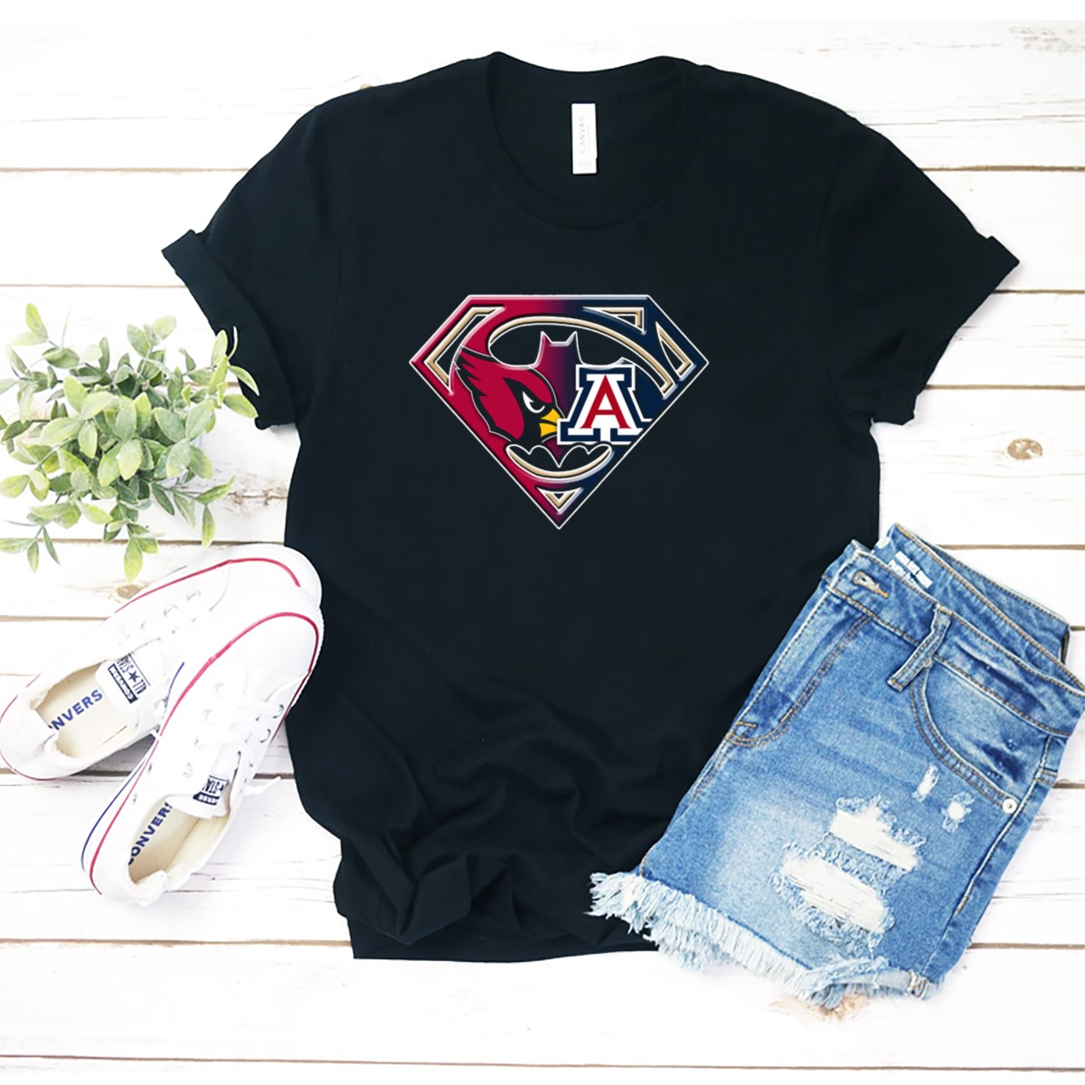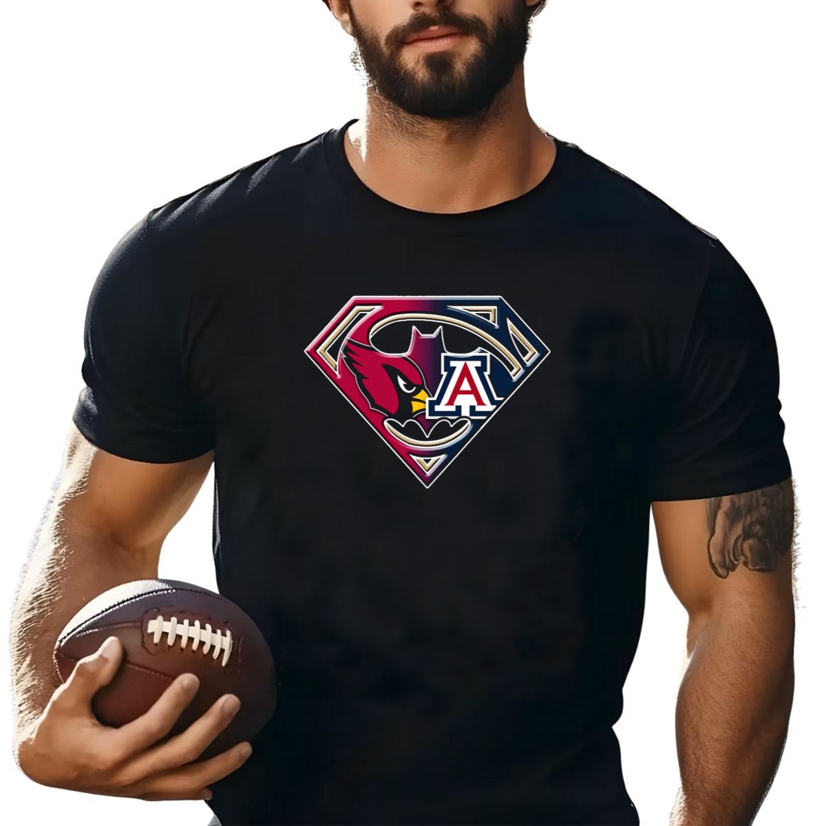 Show your team spirit with our Arizona Cardinals and Arizona Wildcats Superhero Logo Fusion Bat T-Shirt! Perfect for die-hard fans, this unique design combines the essence of both teams into a striking graphic that stands out in any crowd. Whether you’re heading to a game, hosting a themed event, or just enjoying casual wear, this shirt ensures you do it in style. Made for comfort and durability, it’s your go-to choice for any occasion!