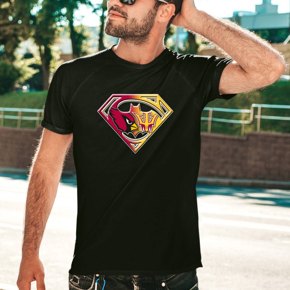 Show off your team spirit with this Arizona Cardinals and ASU Sun Devils Superman Logo Fusion Bat T-Shirt! Perfect for die-hard fans and casual wearers alike, this unique design blends the excitement of Arizona sports with a touch of comic book flair. Whether you’re cheering from the stands, attending a themed event, or simply enjoying a day out, this shirt is your go-to choice for comfort and style.