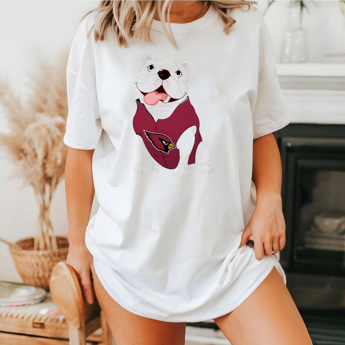 Show your unwavering support for the Arizona Cardinals with our fan-made Bulldog in Team Jersey T-Shirt. This unique design captures the spirit of your favorite team while adding a playful twist that dog lovers will adore. Perfect for casual outings, themed events, or just lounging at home, this shirt is a must-have for any true Cardinals fan looking to showcase their team pride in style.