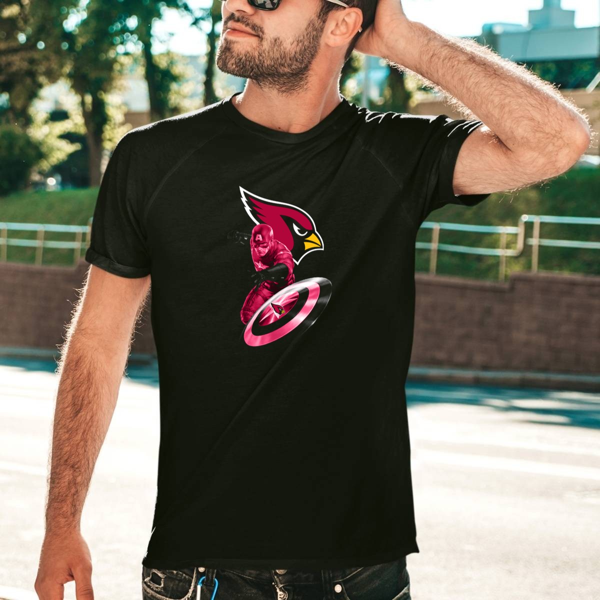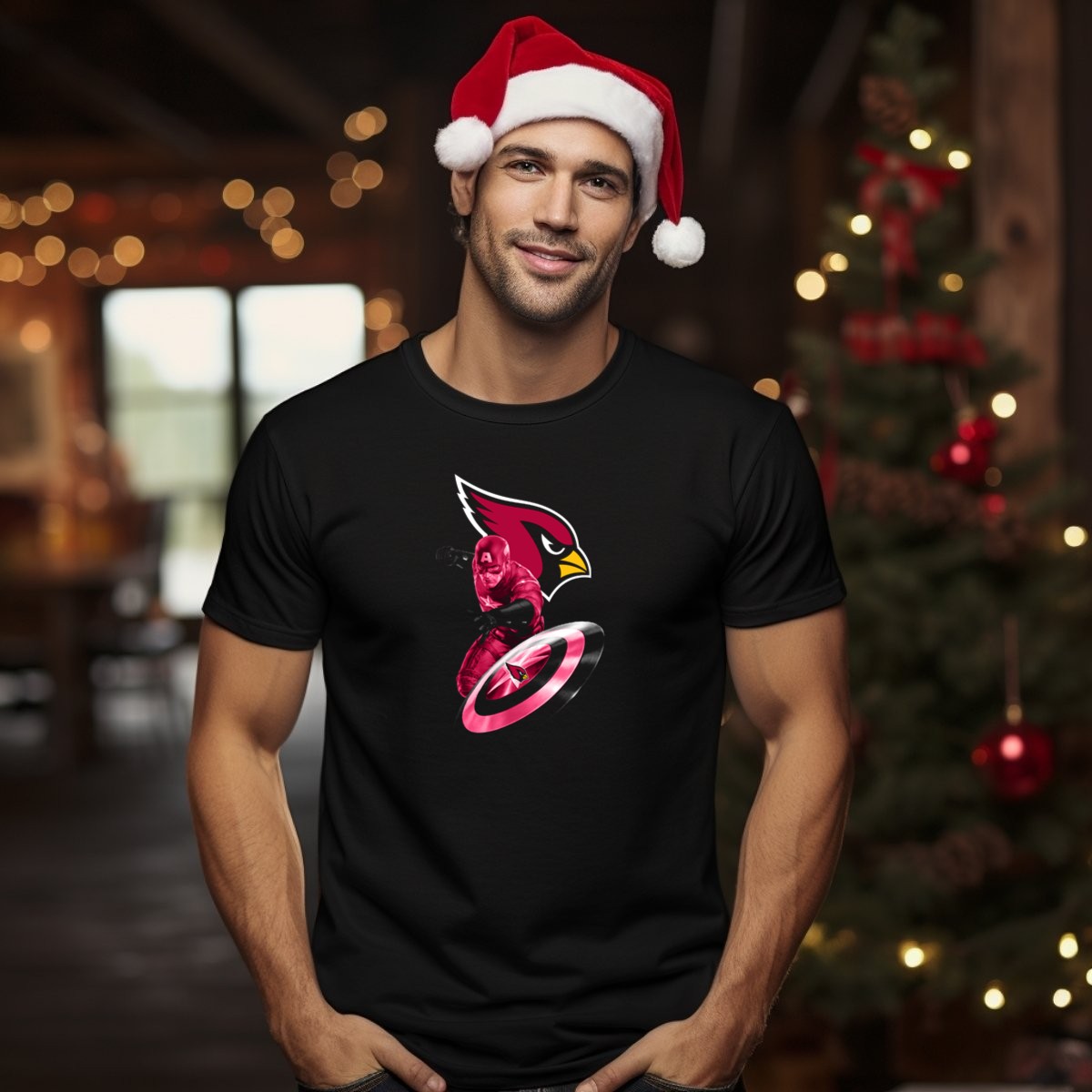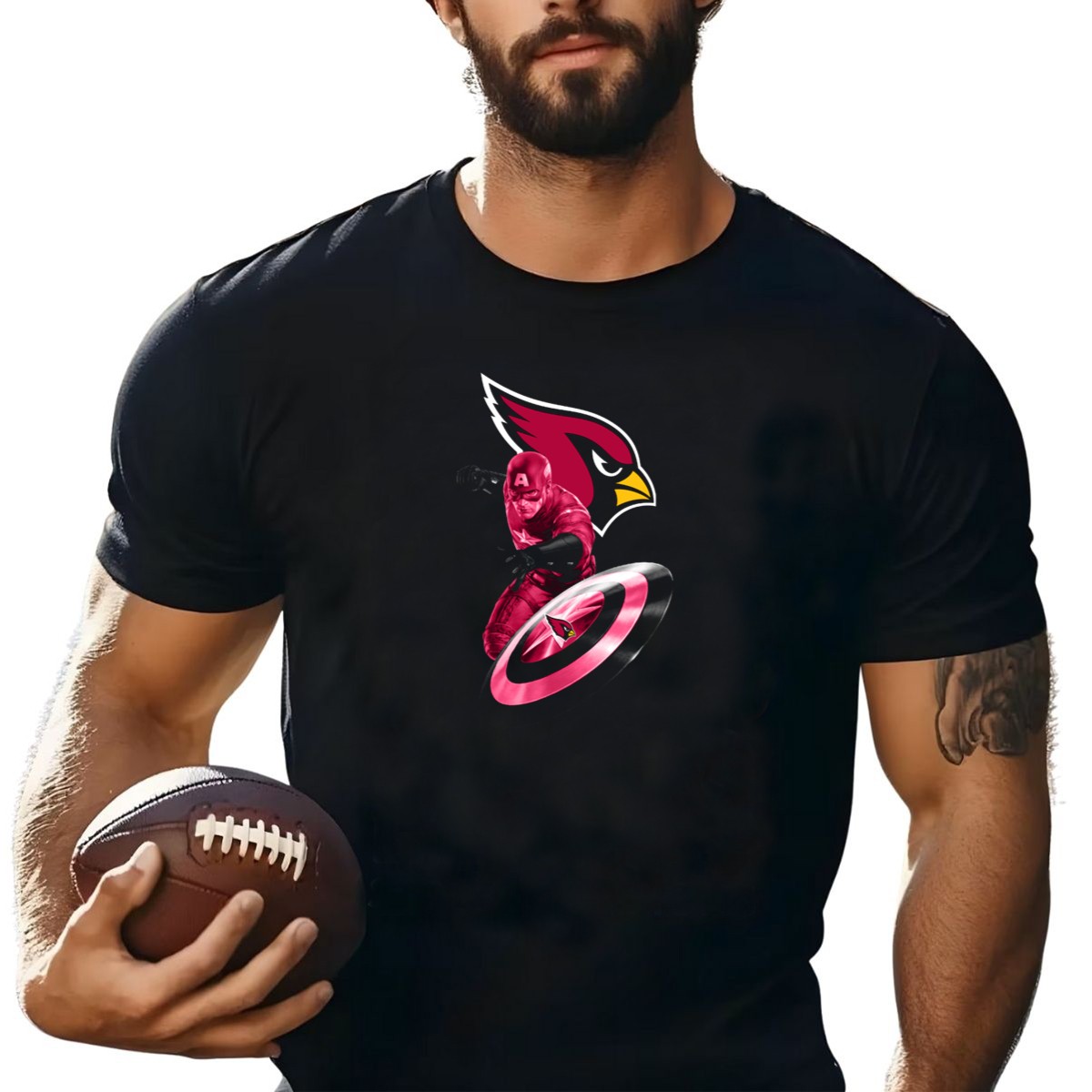Show your team spirit and superhero pride with our Arizona Cardinals Captain America Avengers Shield T-Shirt! This unique fan-made design combines the iconic elements of the Arizona Cardinals with the legendary Captain America shield, making it perfect for avid fans and comic book enthusiasts alike. Ideal for casual outings, themed events, or just lounging at home, this shirt is a must-have for anyone looking to showcase their love for both football and the Marvel universe.