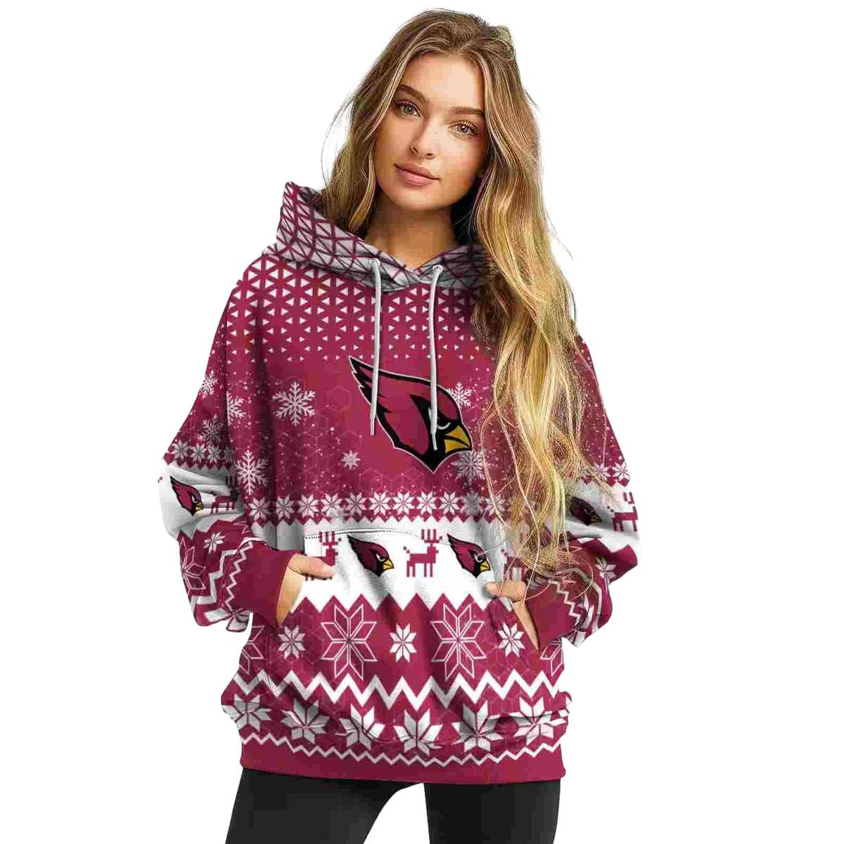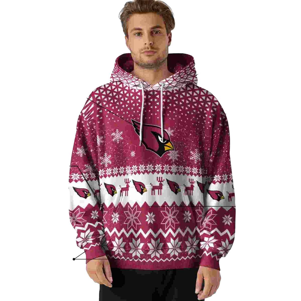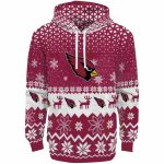 Arizona Cardinals Christmas Reindeer Motif Red AOP Hoodie