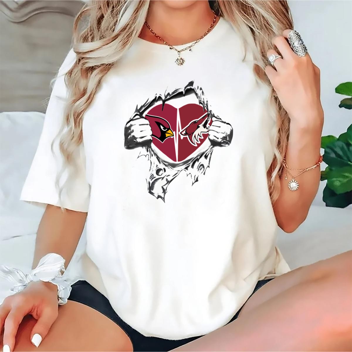 Show your love for the Arizona Cardinals and the Coyotes with this vibrant heart logo burst T-shirt! Perfect for fans of all ages, this shirt combines a classic fit with a striking design that makes it ideal for casual outings, themed events, or daily wear. Made in the USA, it’s a must-have for any sports enthusiast looking to express their loyalty in style.
