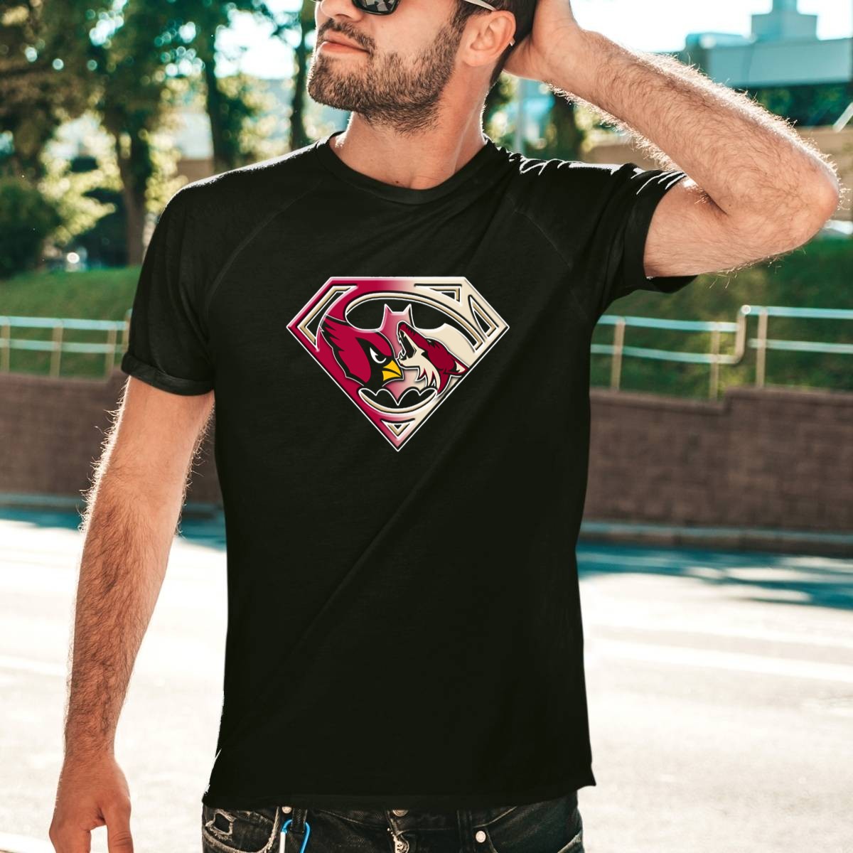 Celebrate your love for Arizona sports with our Arizona Cardinals Coyotes Superman Logo Mashup T-Shirt! This unique fan-made design is perfect for die-hard supporters who want to showcase their team spirit in style. Ideal for casual outings, themed events, or just lounging around, this T-shirt combines comfort and creativity, making it a must-have for any sports enthusiast. Printed in the USA, it’s a standout piece that brings together the excitement of football and hockey in one iconic look.