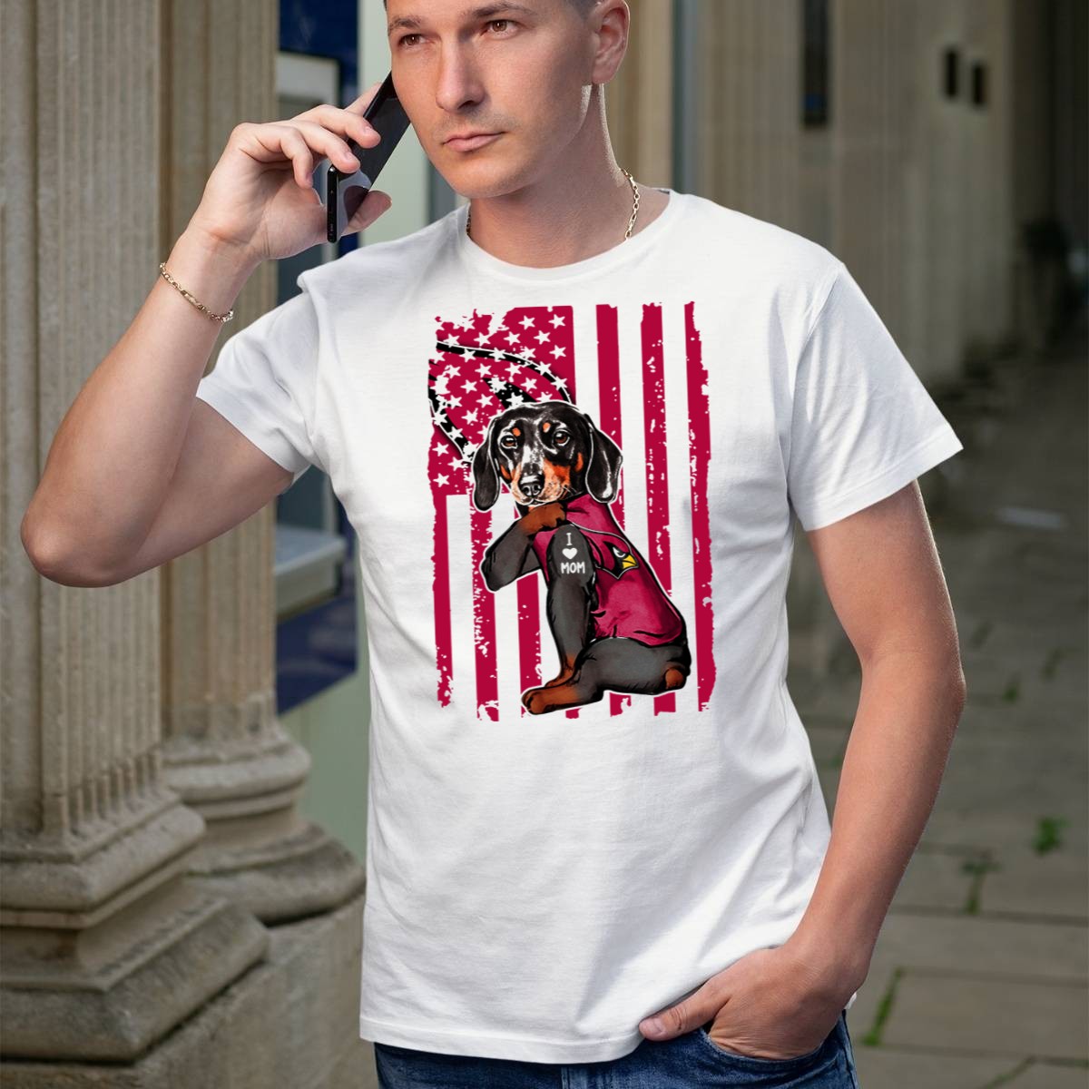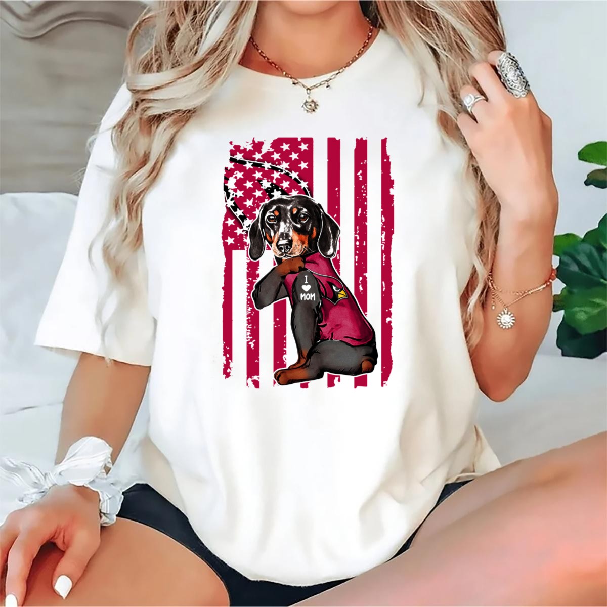 Show your love for both the Arizona Cardinals and your furry friend with this unique Dachshund “I Love Mom” T-shirt! Perfect for dog lovers and sports fans alike, this shirt is ideal for casual outings, themed events, or simply lounging around the house. Made with a fan-made design that’s printed in the USA, it combines comfort and style, making it a standout piece in any wardrobe.