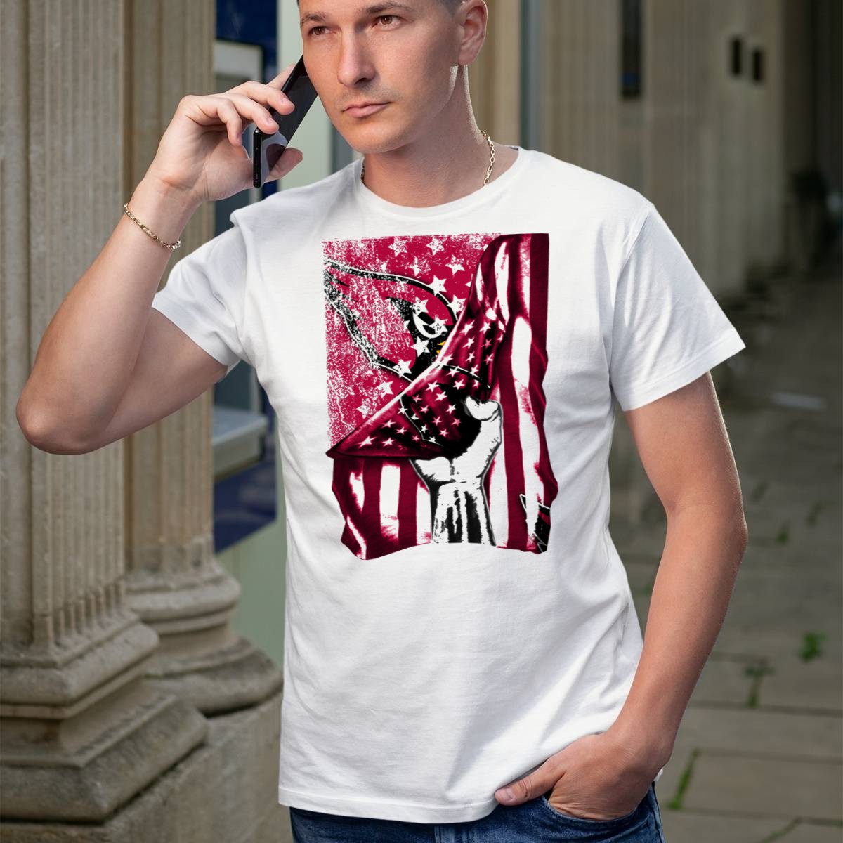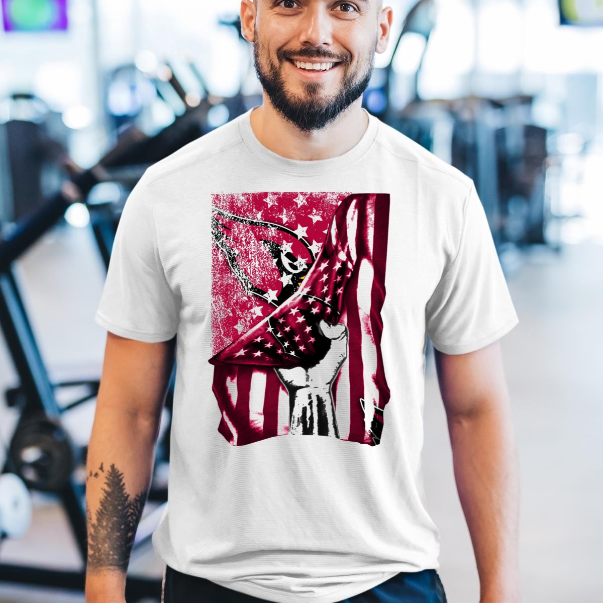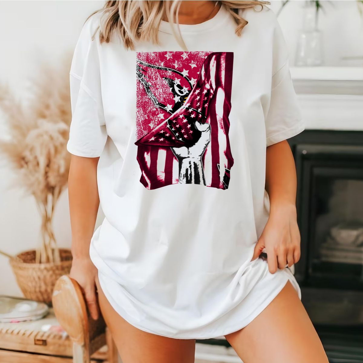 Arizona Cardinals Hand Holding American Flag with Cardinal Logo Stars T-Shirt