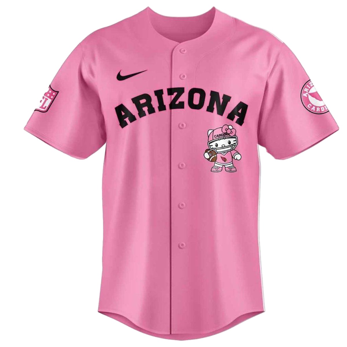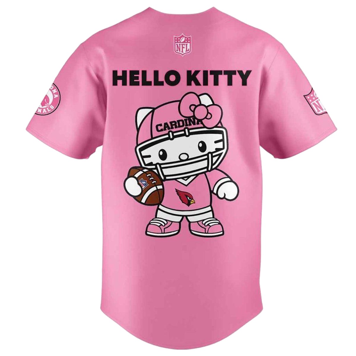Elevate your game day or casual look with our Arizona Cardinals Hello Kitty Pink Baseball Jersey! This unique jersey combines sporty style with playful design, making it a perfect choice for fans and fashion enthusiasts alike. Whether you’re heading to the stadium, hanging out with friends, or creating a custom team uniform, this jersey will ensure you stand out from the crowd.