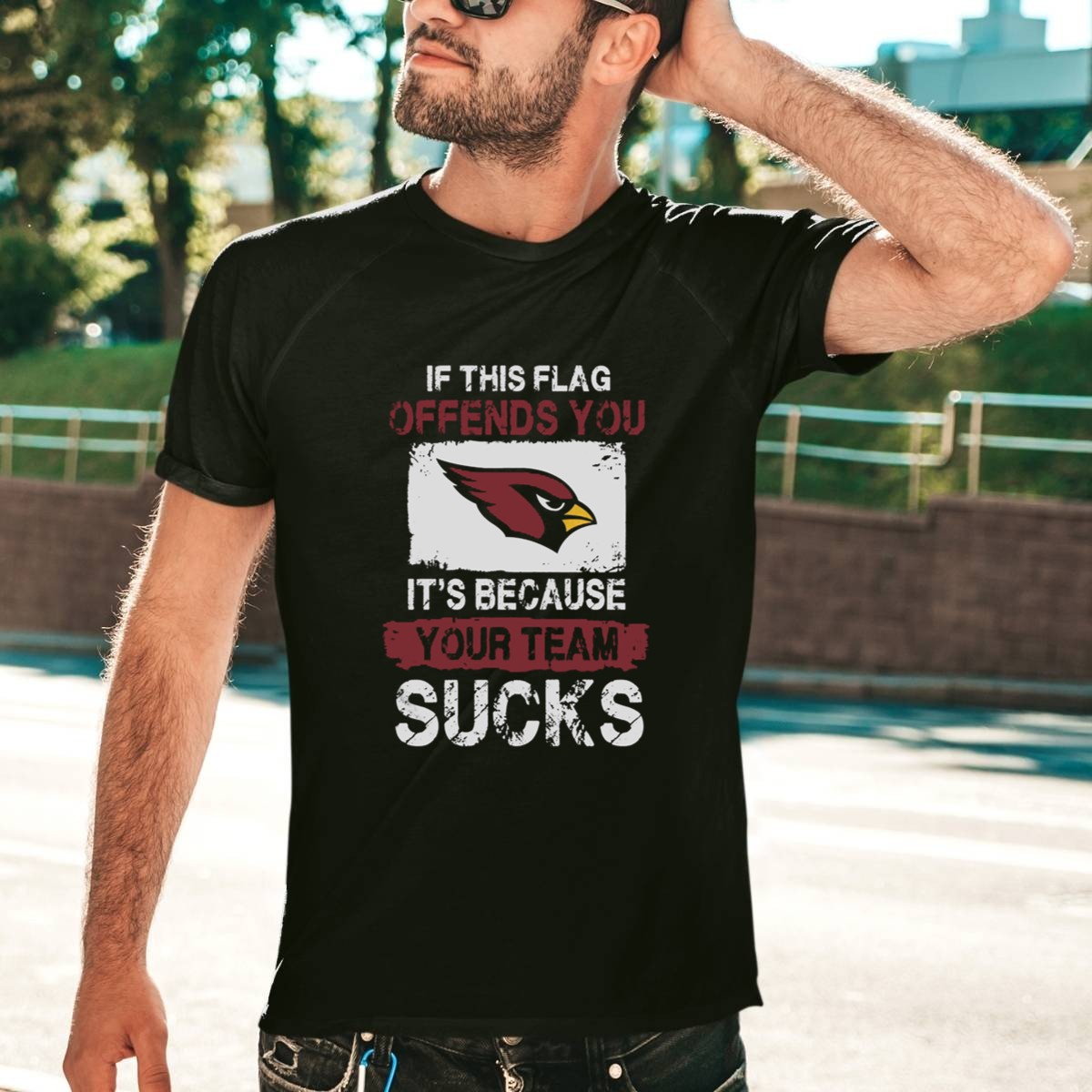 Show your unwavering support for the Arizona Cardinals with this eye-catching “If This Flag Offends You It’s Because Your Team Sucks” T-shirt. Perfect for die-hard fans, this shirt combines humor and team pride, making it an ideal choice for casual outings, game days, or themed events. Made with a fan-made design printed in the USA, it’s a unique addition to any Cardinals supporter’s wardrobe.