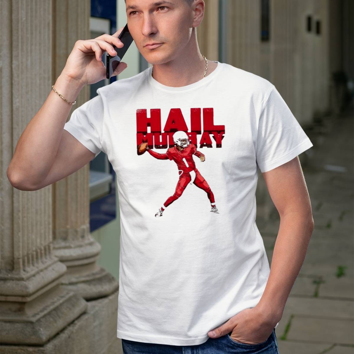Show off your team spirit with our Arizona Cardinals Kyler Murray Hail Murray Football T-Shirt! This fan-made design is perfect for die-hard Cardinals supporters who want to celebrate their favorite player in style. Ideal for casual wear, themed events, or just lounging around, this shirt combines comfort with a bold statement that every football fan will appreciate. Made in the USA, this classic fit tee is a must-have for any true Arizona Cardinals enthusiast.