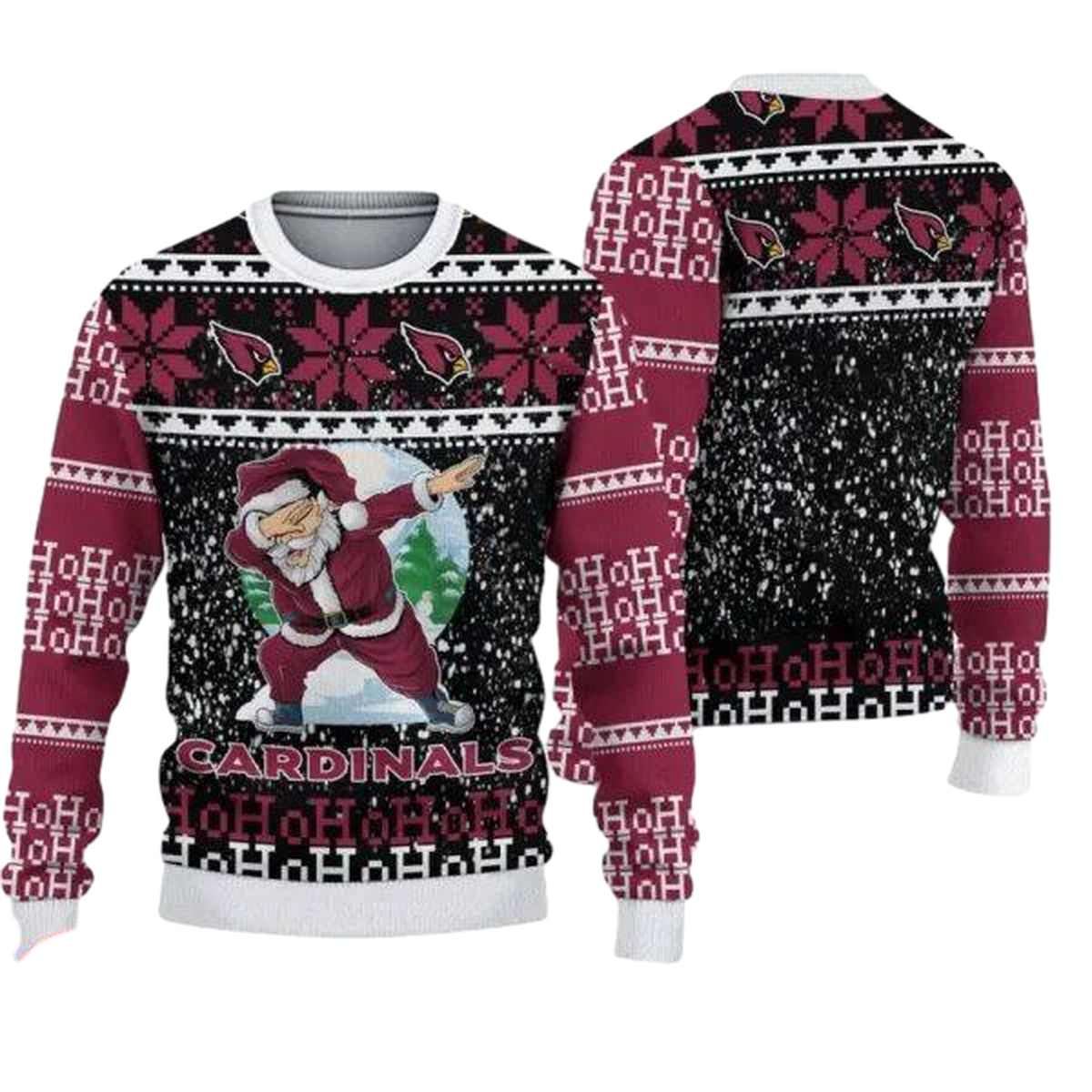 Get ready to spread some holiday cheer with our Arizona Cardinals Logo And Dabbing Santa Claus Ugly Sweater! Perfect for die-hard fans and festive fun-seekers alike, this sweater is your go-to choice for holiday parties, game days, or cozy nights at home. Its playful design adds a whimsical touch to your winter wardrobe, making you the life of the party wherever you go!