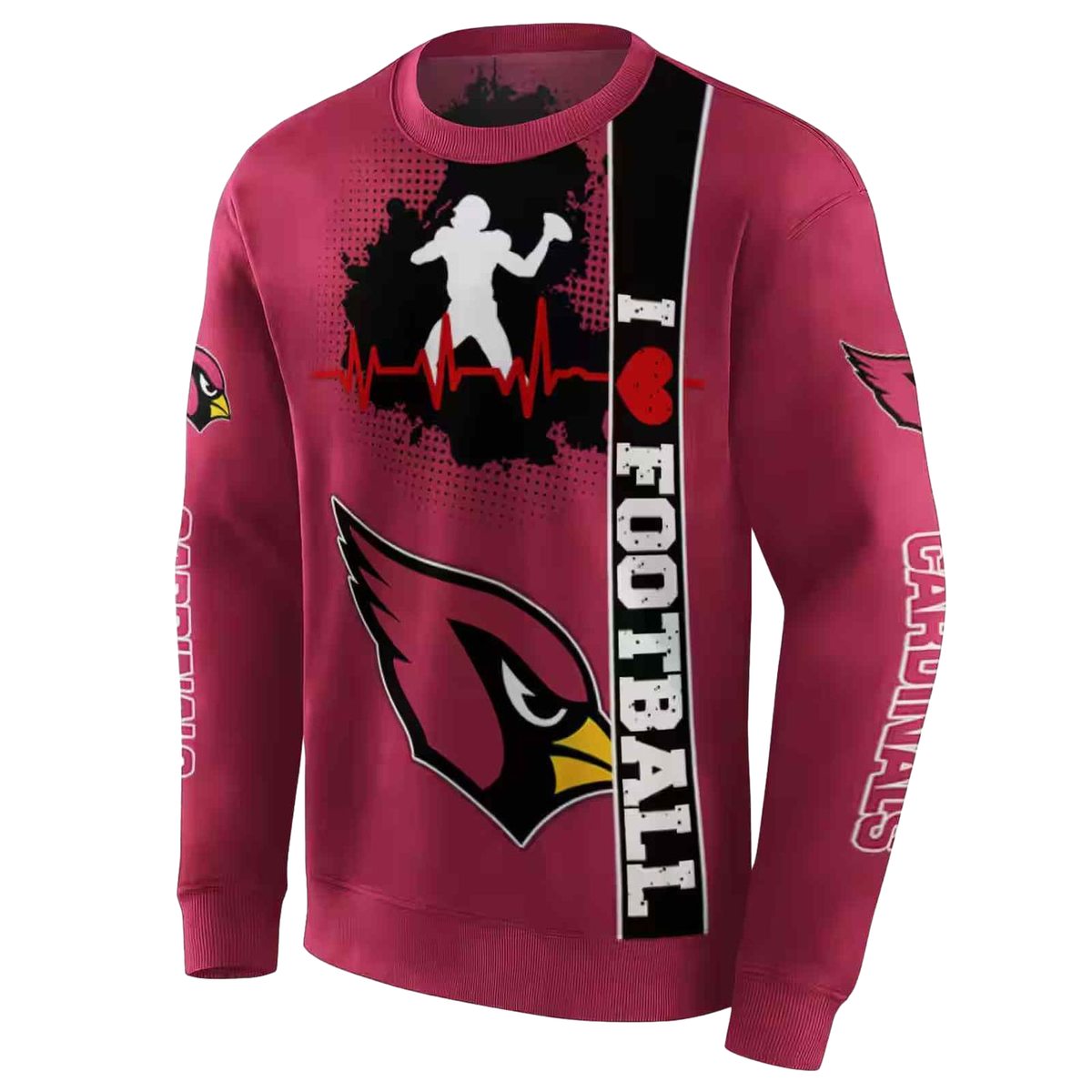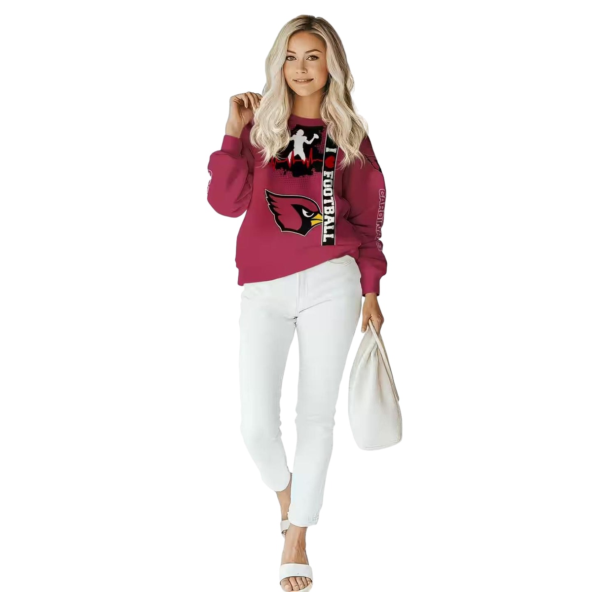 Show off your team spirit with the Arizona Cardinals Logo Heartbeat Red AOP Sweatshirt, the perfect addition for any devoted fan. Designed for comfort and style, this sweatshirt is ideal for casual outings, game days, or cozy nights in. Its unique all-over print captures the essence of the Cardinals, making it a standout piece in your streetwear collection.