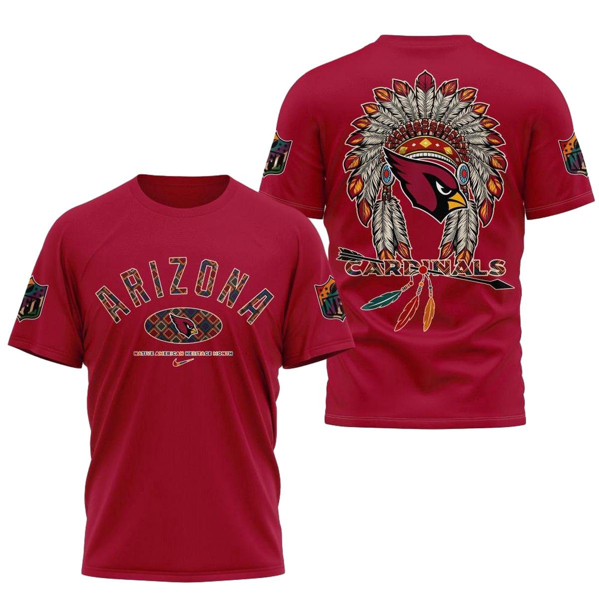 Celebrate your pride and passion for the Arizona Cardinals with our Native American Heritage Month AOP T-shirt! This vibrant and unique graphic tee is perfect for fans and supporters who want to showcase their team spirit in a stylish and meaningful way. Whether you’re at the game, hanging out with friends, or just enjoying a casual day out, this shirt is a great addition to any outfit.