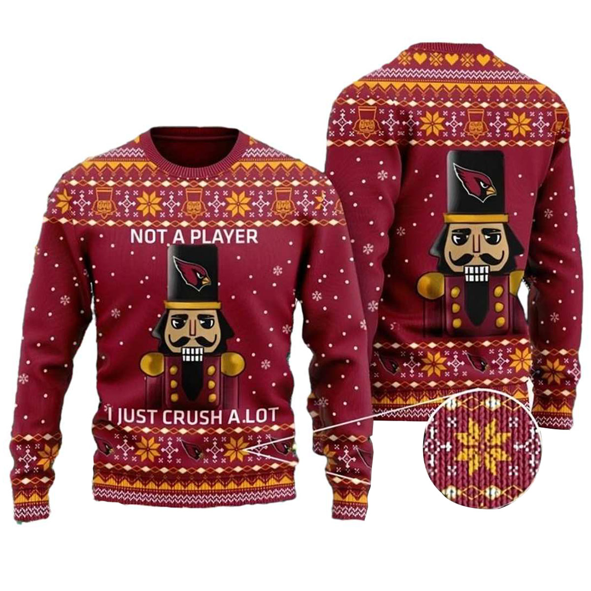 Get ready to show off your team spirit with our Arizona Cardinals Not A Player I Just Crush A Lot Ugly Sweater! Perfect for die-hard fans and anyone looking to add a playful touch to their winter wardrobe, this sweater is a must-have for game days, holiday parties, or cozy nights in. With its unique design, you’ll be turning heads and spreading cheer wherever you go!