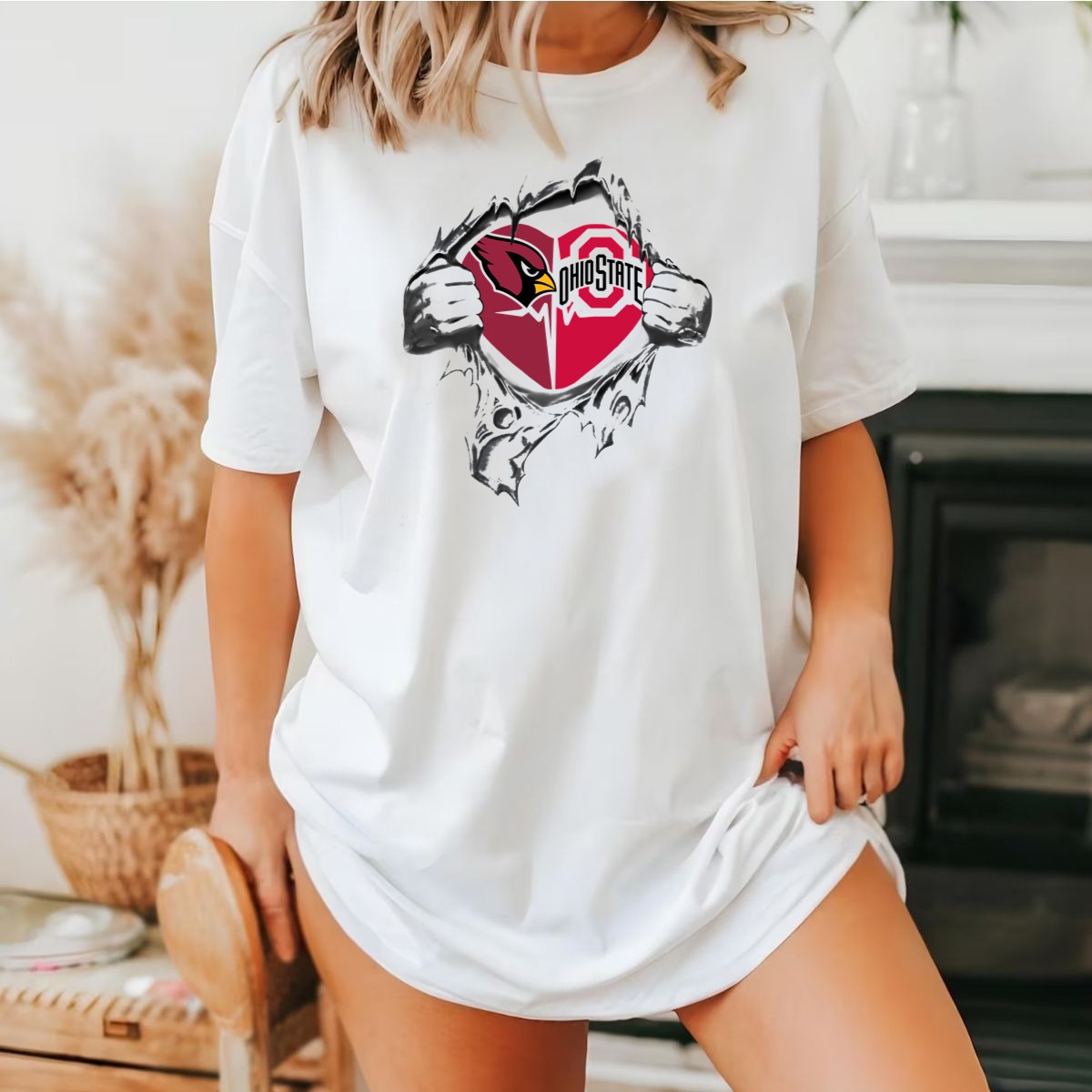Show your love for both the Arizona Cardinals and Ohio State Buckeyes with this uniquely designed fan-made graphic T-shirt! Perfect for dedicated sports enthusiasts, this shirt is ideal for casual outings, themed events, or just lounging at home. Crafted with comfort in mind, the soft and breathable material keeps you feeling great all day, making it a must-have for any fan looking to showcase their team spirit in style.