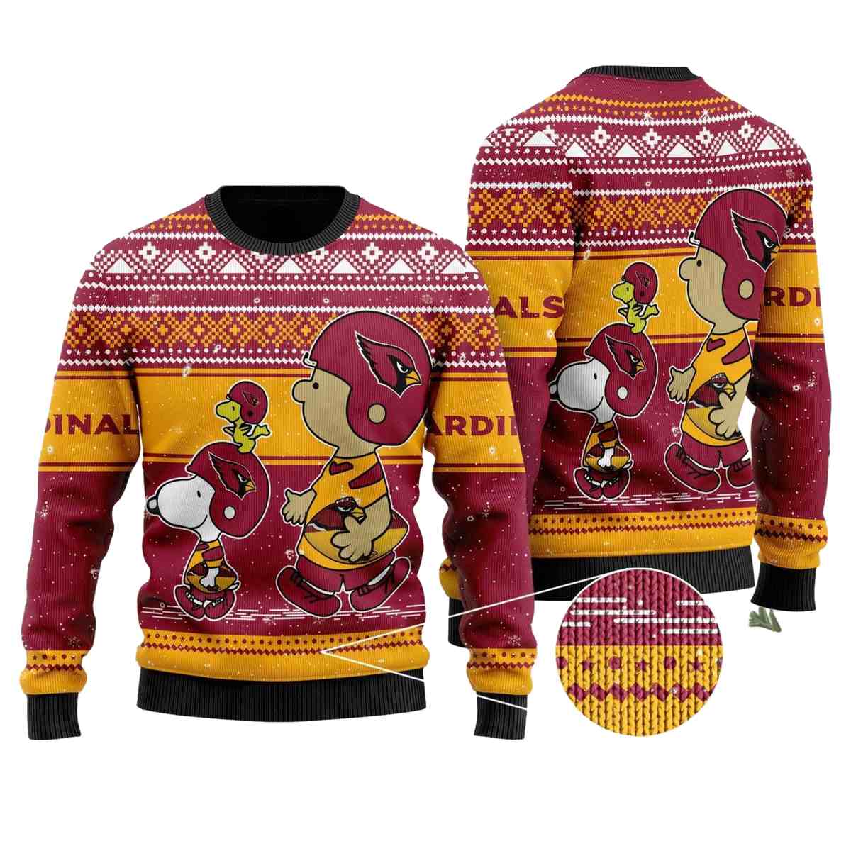 Get ready to show off your team spirit with our Arizona Cardinals Peanuts Ugly Sweater! Perfect for fans and families alike, this festive sweater combines the whimsical charm of Peanuts characters with the pride of the Cardinals. Whether you’re cheering from the stands, hosting a holiday gathering, or just snuggling up at home, this sweater is your go-to for warmth and fun!