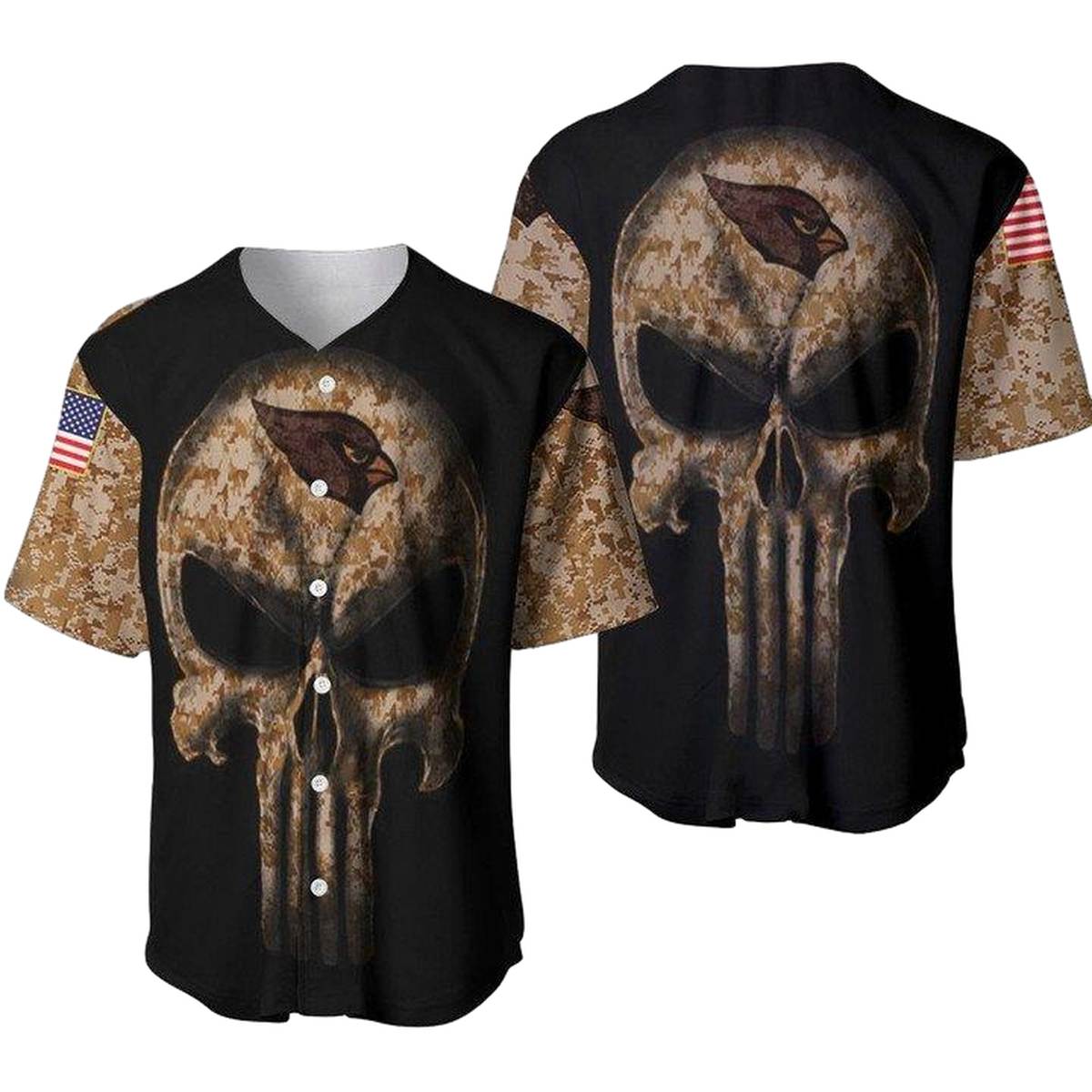 Arizona Cardinals Punisher Skull Camo Baseball Jersey