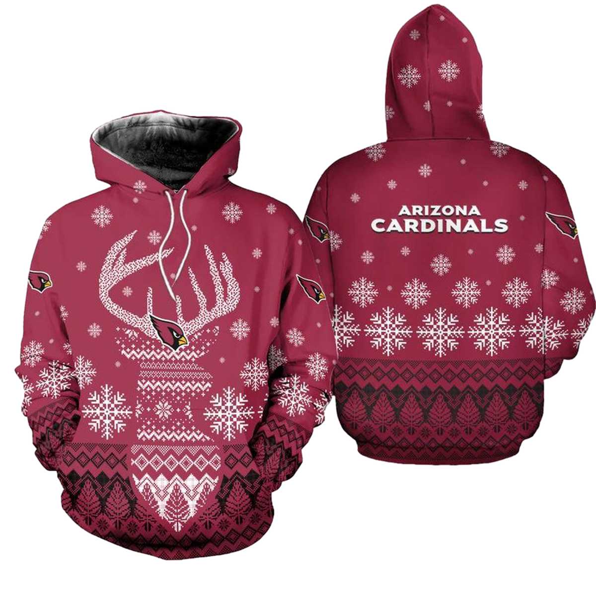Celebrate the festive season in style with our Arizona Cardinals Reindeer Merry Christmas All-Over Print Hoodie. Perfect for fans of all ages, this cozy hoodie is designed for everyday wear or casual outdoor activities during the winter months. Its unique design showcases your team spirit while keeping you warm and comfortable, making it a standout piece in any holiday wardrobe.