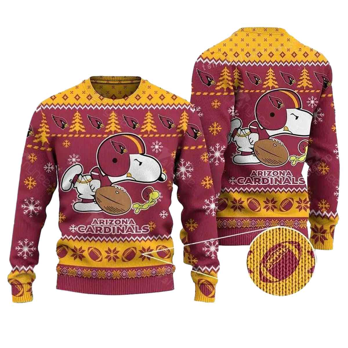Get ready to score big this holiday season with our Arizona Cardinals Snoopy Player Ugly Sweater! Perfect for die-hard fans and holiday revelers alike, this sweater combines team spirit with playful charm. Ideal for game days, festive gatherings, or cozy nights in, it’s designed to keep you warm while showcasing your love for the Cardinals in a uniquely fun way!