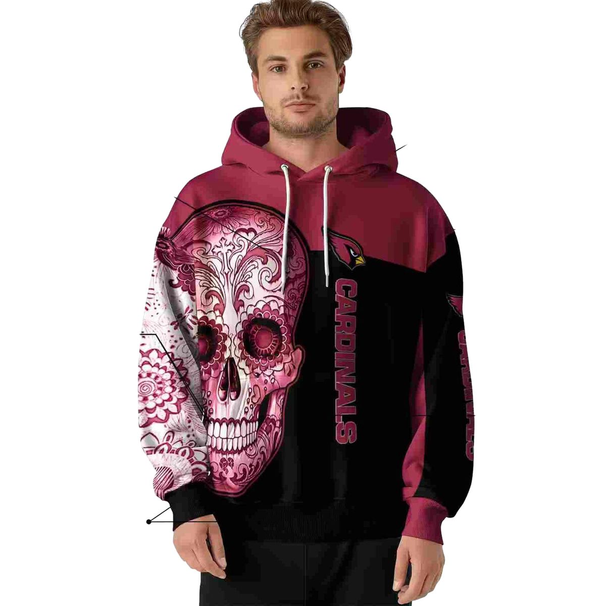 Arizona Cardinals Sugar Skull Red Black AOP Hoodie