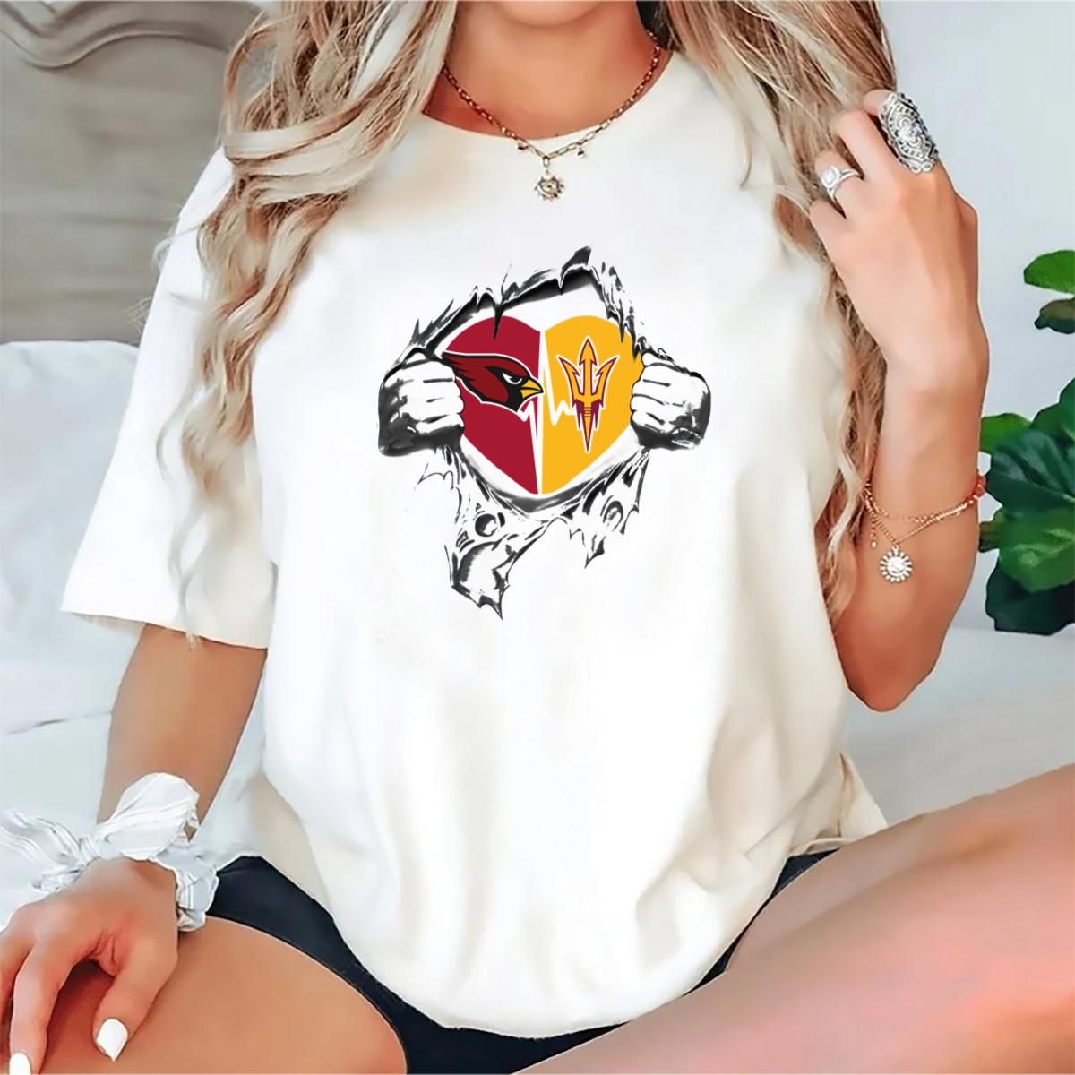 Show your unwavering support for the Arizona Cardinals with our “Sun Devils It’s In My Heart” T-shirt! This fan-made design is perfect for die-hard football fans and casual wear enthusiasts alike. Whether you’re cheering from the stands, hosting a themed event, or simply going about your daily activities, this shirt combines comfort and style. Printed in the USA, it’s a unique piece that showcases your passion for the game and the Sun Devils spirit!