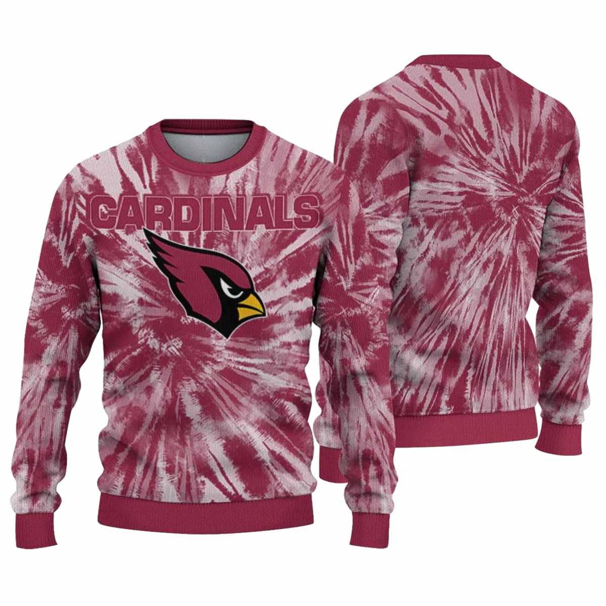 Step up your streetwear game with our Arizona Cardinals Tie Dye Designs Red AOP Sweatshirt, designed for fans who want to showcase their team spirit in style. Perfect for casual outings, lounging at home, or hitting the gym, this sweatshirt combines a vibrant tie-dye pattern with the iconic Arizona Cardinals logo, making it a standout piece for any fan looking to make a bold statement.