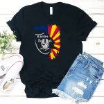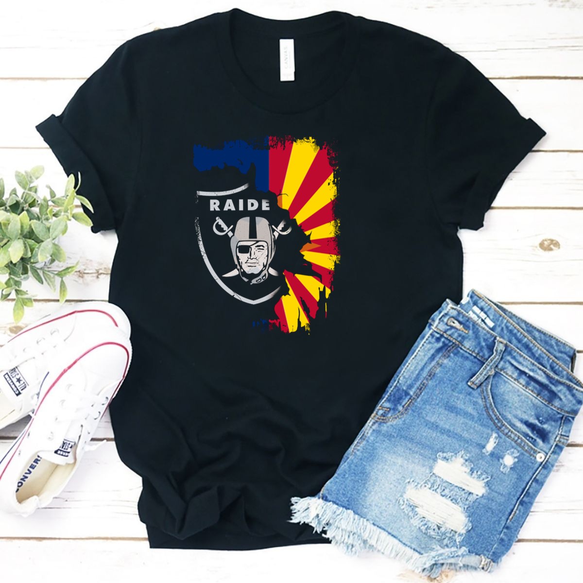 Show your love for Arizona and your passion for the Raiders with our Arizona Flag With Raiders Logo Fusion T-Shirt. This fan-made design is perfect for sports enthusiasts who want to showcase their team spirit in a unique way. Crafted for comfort and style, this shirt is ideal for casual outings, themed events, or simply relaxing at home. Printed in the USA, it’s not just a shirt; it’s a statement piece for every devoted fan.