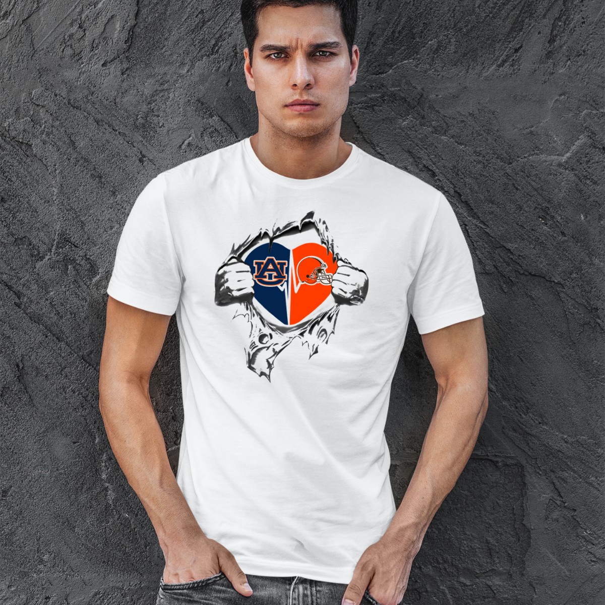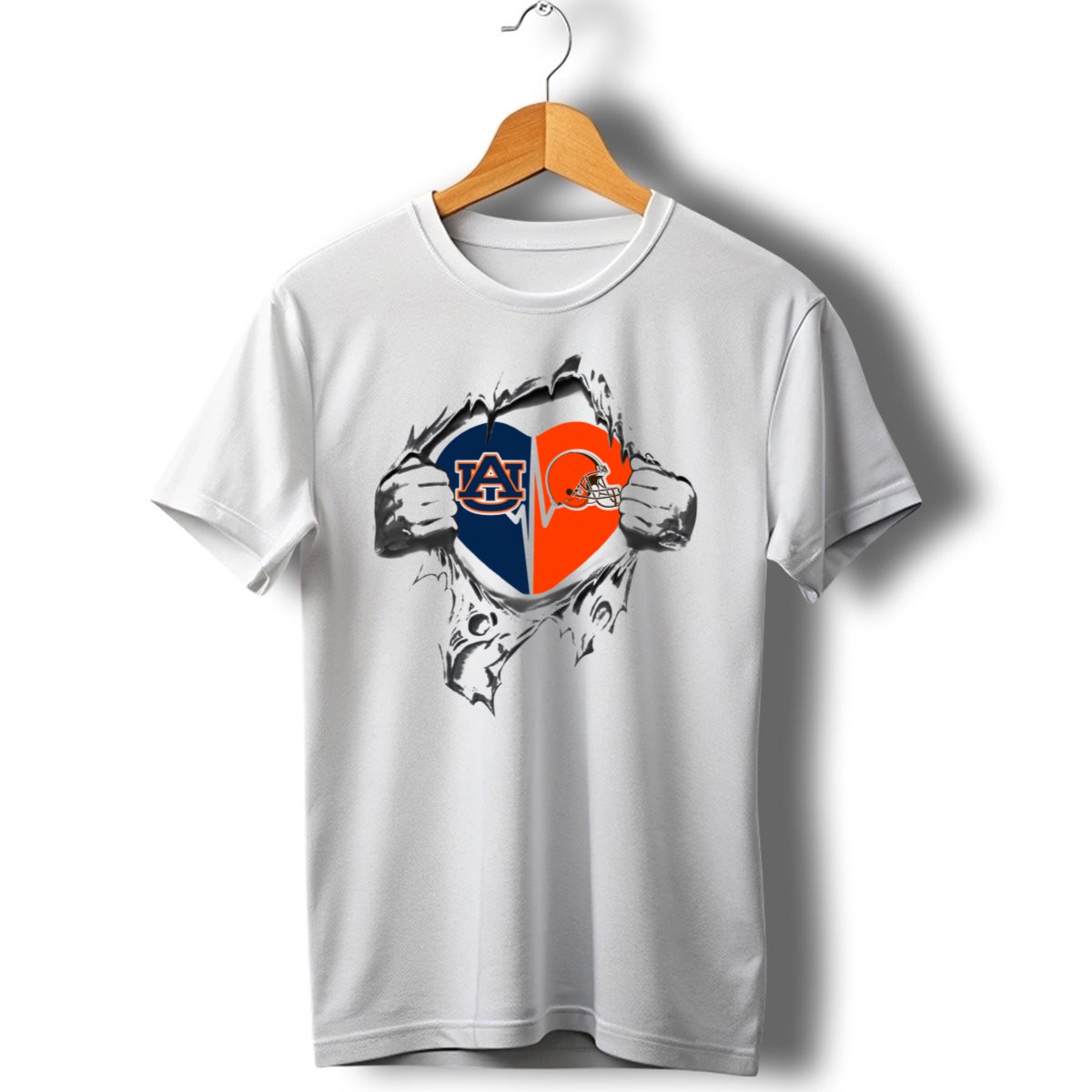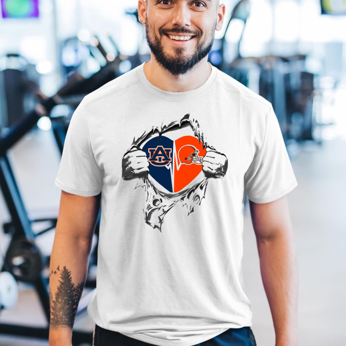 Show your love for both the Auburn Tigers and the Cleveland Browns with this uniquely designed heart T-shirt! Perfect for passionate fans, this shirt is ideal for casual outings, themed events, or just lounging around at home while cheering for your favorite teams. Made with a fan-made design printed in the USA, this tee allows you to express your team spirit in style and comfort.