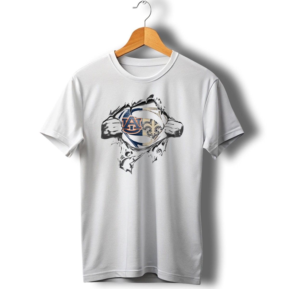 Show your team spirit in a unique way with our Auburn Tigers New Orleans Saints Superhero Fusion T-Shirt! Perfect for die-hard fans, this shirt features a dynamic design that combines the essence of your favorite college and NFL teams, making it an exciting choice for game days, casual outings, or themed events. Crafted for comfort and style, this fan-made design is printed in the USA, ensuring you stand out in any crowd.