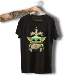 Show off your love for Baby Yoda and the New Orleans Saints with this unique and playful graphic T-shirt! Perfect for fans of all ages, this shirt combines the adorable charm of Baby Yoda with the spirited vibe of game day. Whether you’re heading to a casual outing, a themed event, or just lounging at home, this shirt is sure to turn heads and spark conversations. Made in the USA, it’s a fan-made design that truly captures the essence of fandom.