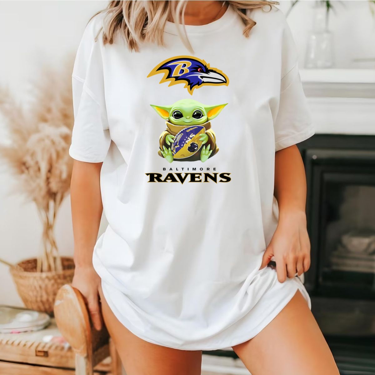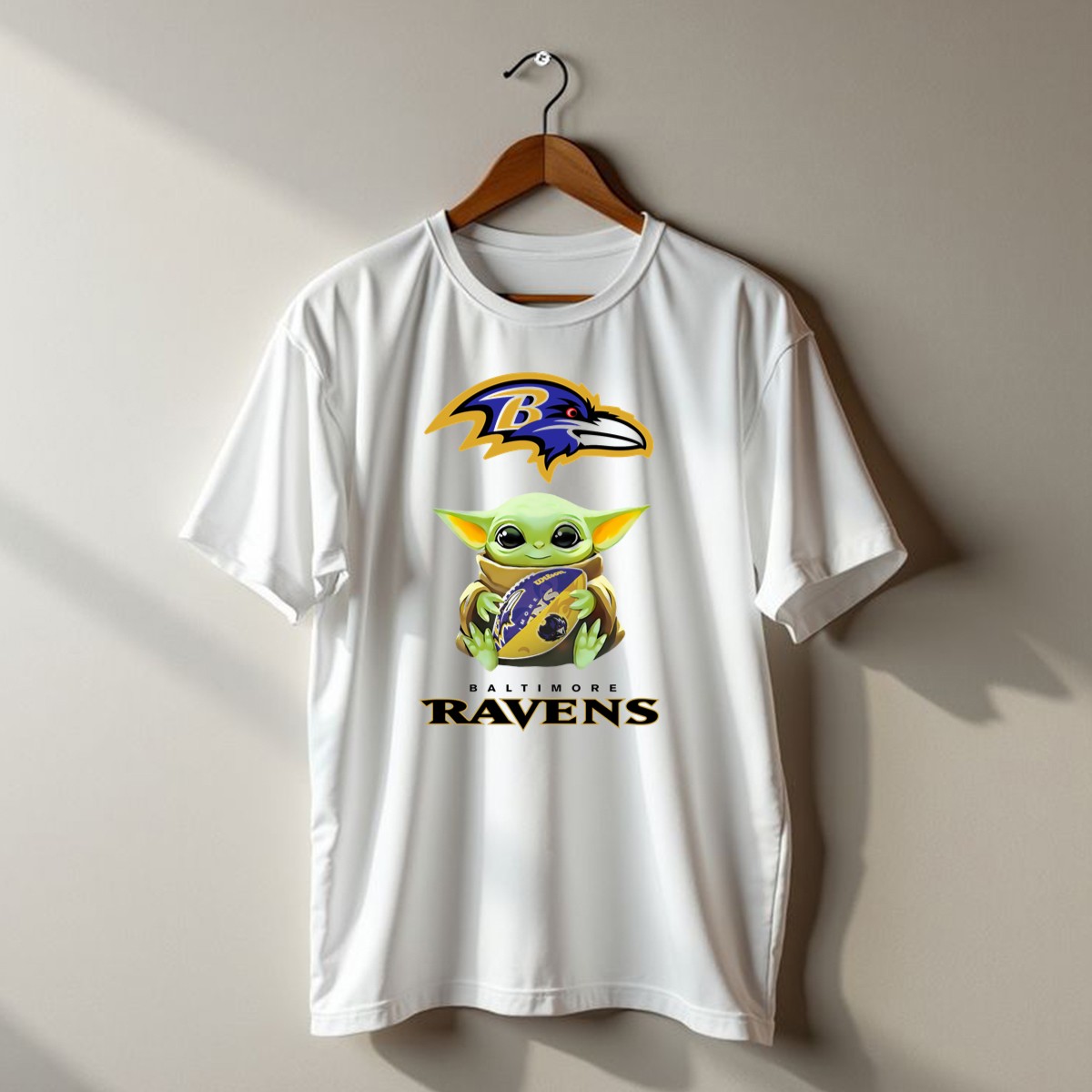Show off your love for football and your favorite adorable character with our Baby Yoda Hug Baltimore Ravens Football Logo T-Shirt! Perfect for fans of all ages, this fan-made design combines the charm of Baby Yoda with the spirit of the Ravens, making it an ideal choice for game days, casual outings, or themed events. Crafted for comfort and style, this shirt is a must-have for any die-hard Ravens supporter looking to add a touch of fun to their wardrobe.