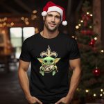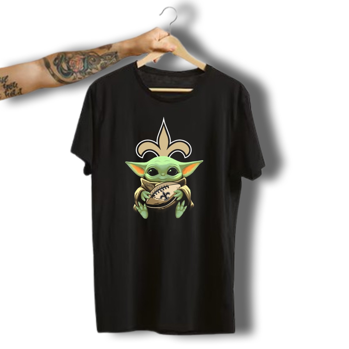 Babyyoda Holding Saints Football With Fleur De Lis T Shirt